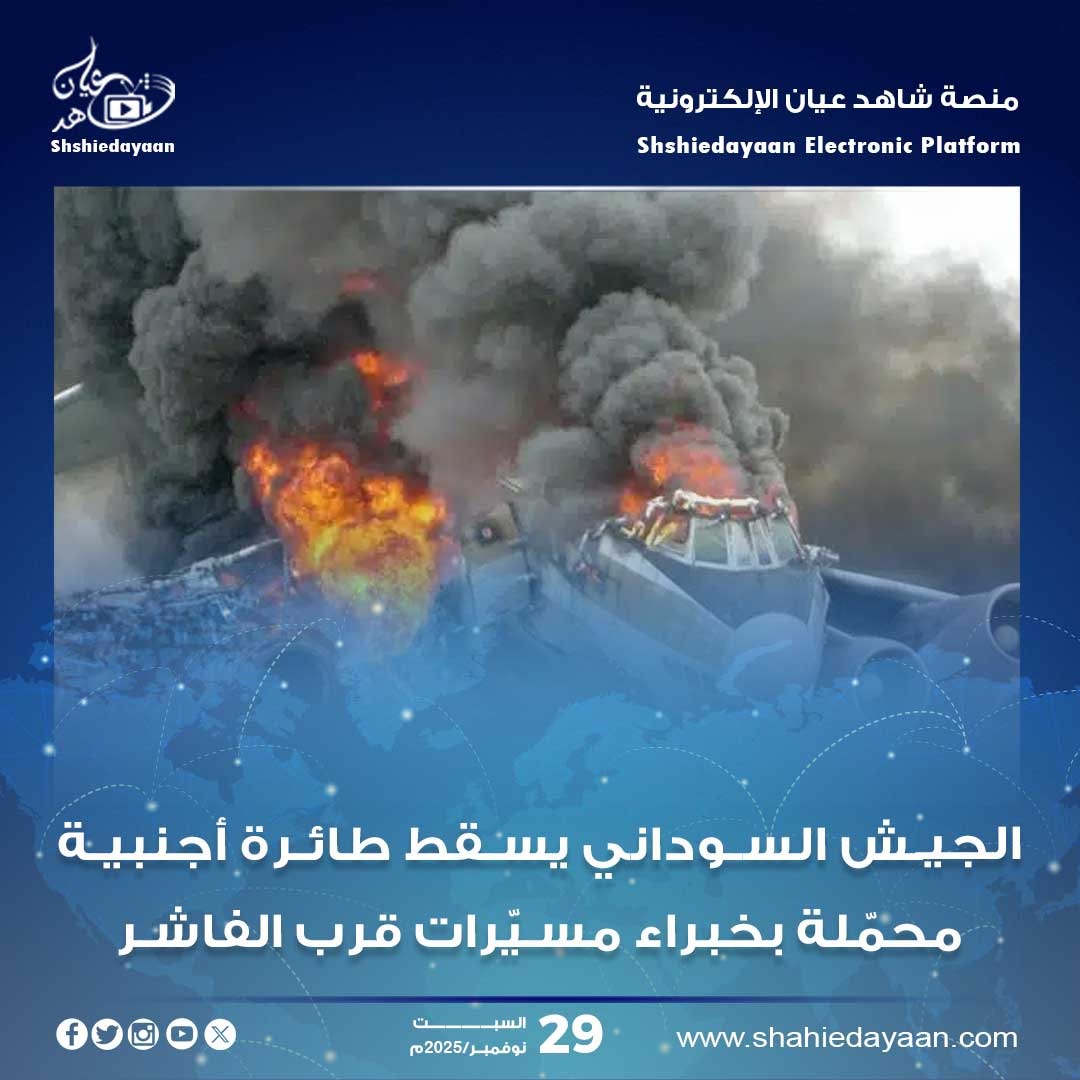 أعلن الجيش السوداني إسقاط طائرة شحن من طراز “يوشن” قرب مدينة الفاشر، كانت محمّلة بطاقم أجنبي وخبراء تشغيل مسيّرات، في…