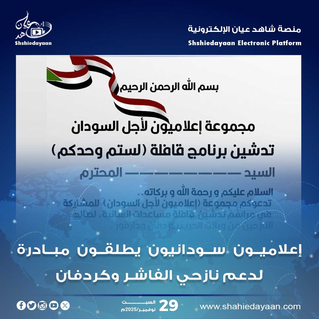 أطلق إعلاميون سودانيون مبادرة إنسانية باسم “إعلاميون لأجل السودان” لدعم النازحين من الفاشر وكردفان، بعد هجمات مليشيا آل دقلو. وتهدف…