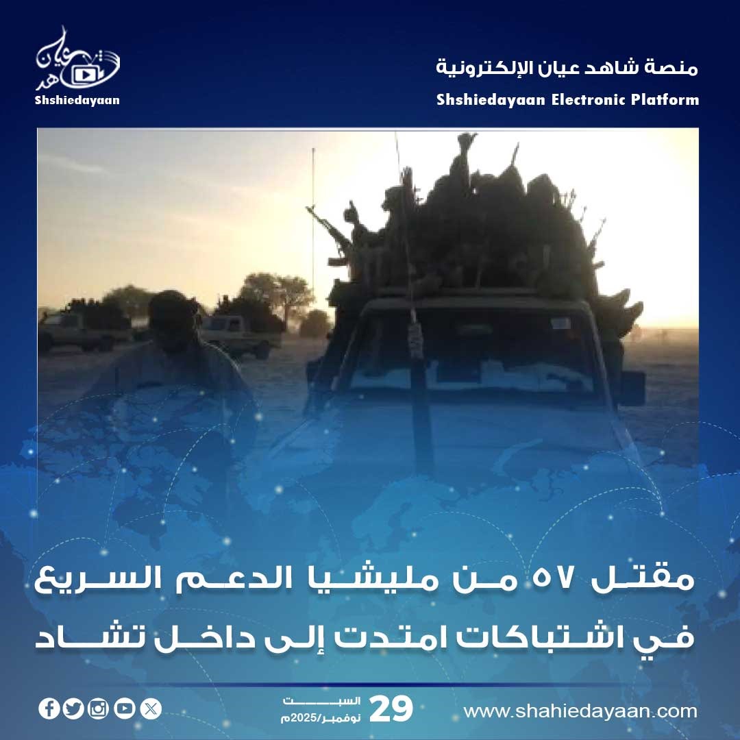كشفت مصادر عن مقتل 57 عنصراً من مليشيا الدعم السريع المنحدرين من جنوب دارفور، خلال اشتباكات مسلحة اندلعت داخل تشاد…