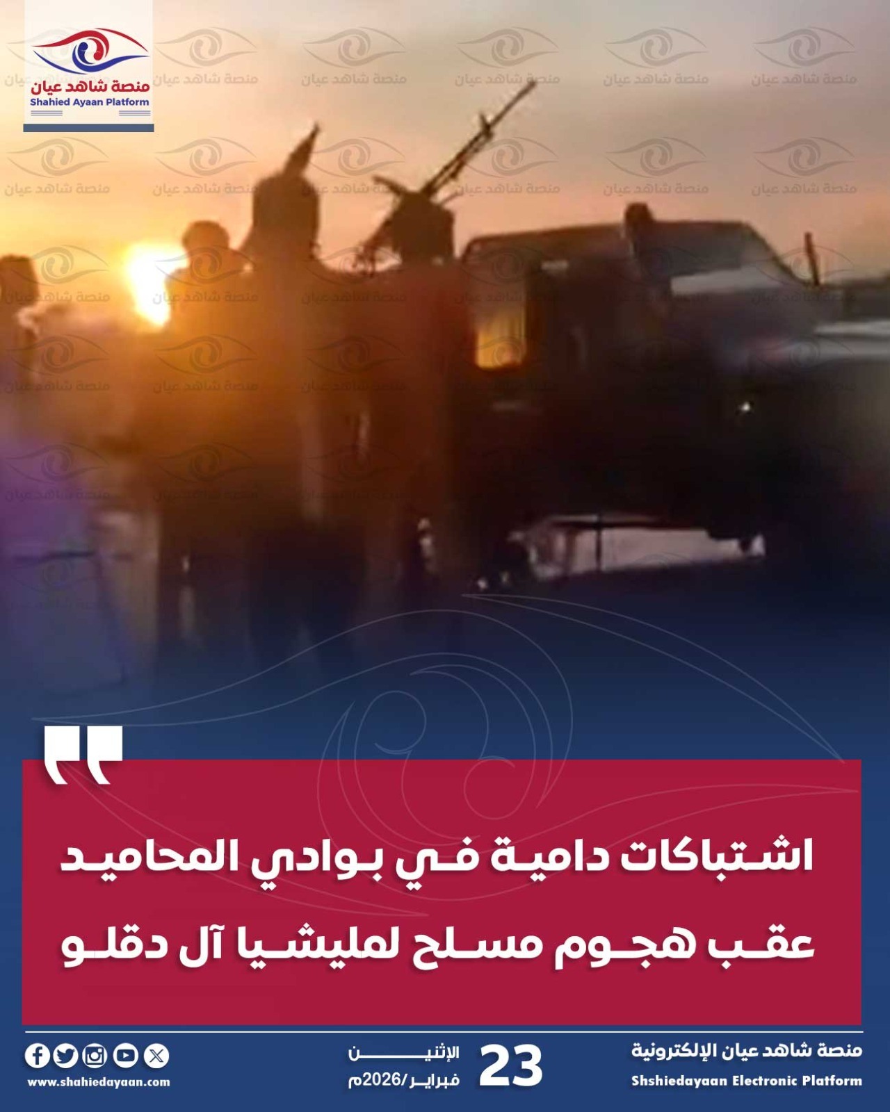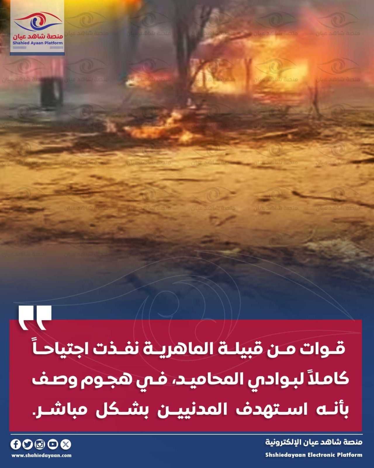 أفاد مصدر ميداني لمنصة ” شاهد عيان ” بأن قوات من قبيلة الماهرية نفذت اجتياحاً كاملاً لبوادي المحاميد، في هجوم…
