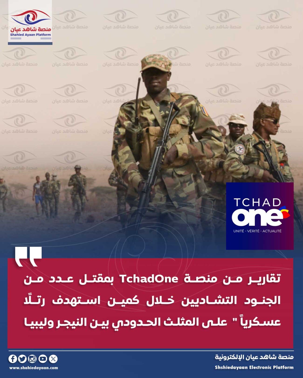 “أفادت تقارير من منصة TchadOne بمقتل عدد من الجنود التشاديين خلال كمين استهدف رتلًا عسكرياً” على المثلث الحدودي بين النيجر…