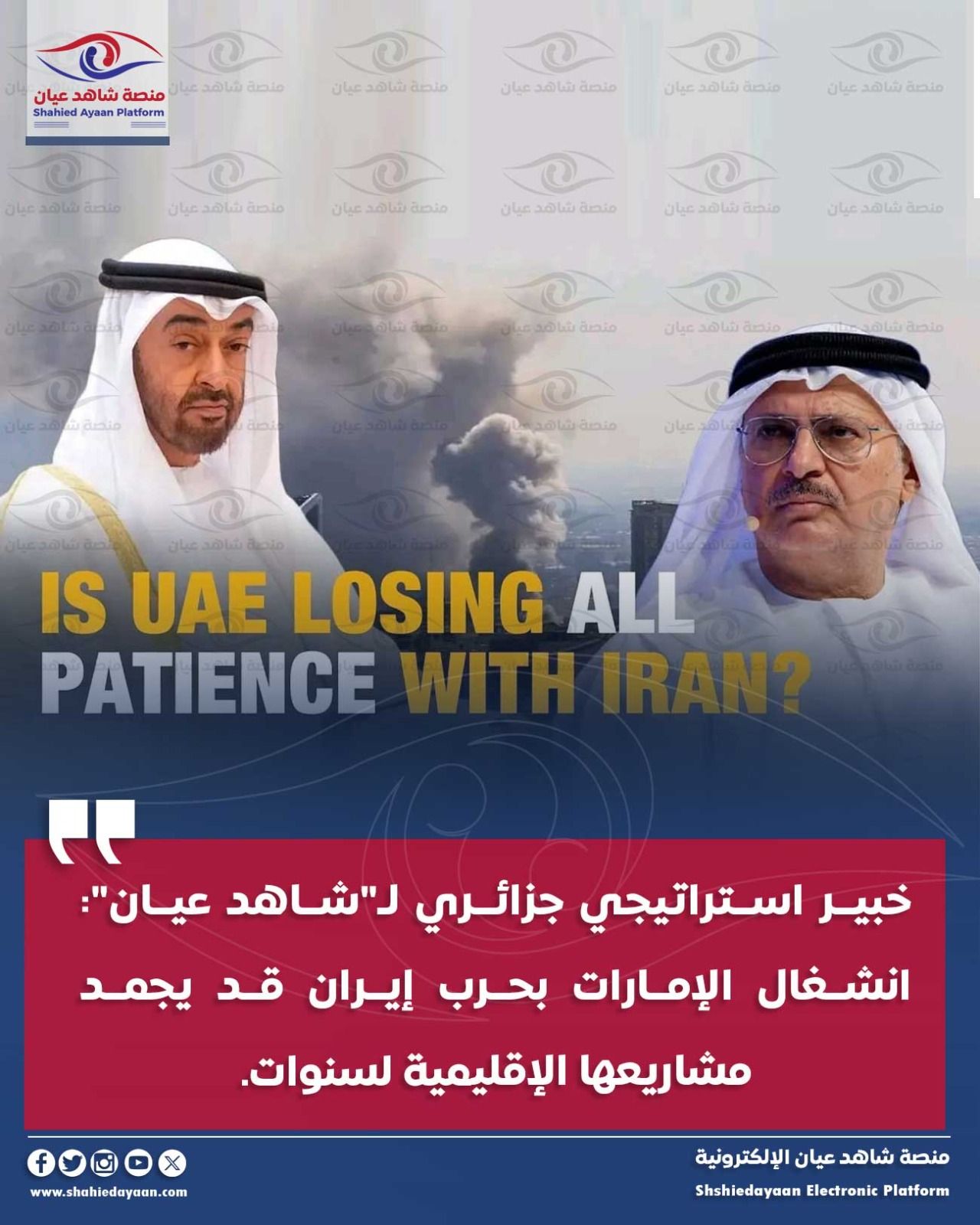 قال خبير استراتيجي جزائري في حديث خاص لـ”شاهد عيان” إن انشغال الإمارات بالحرب مع إيران سيجعلها تركز لسنوات قادمة على…