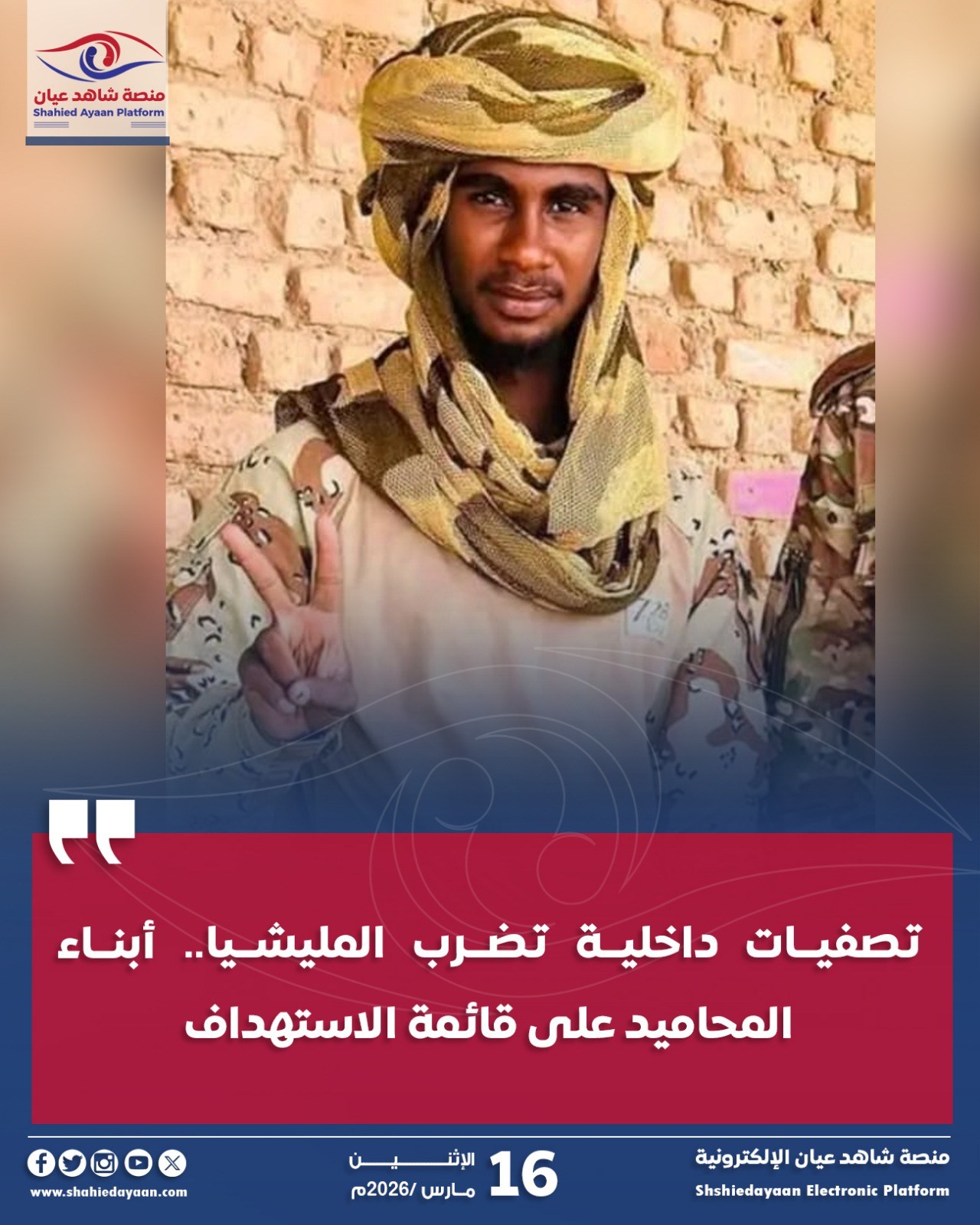 أفادت مصادر خاصة لـ”شاهد عيان” بأن عمليات التخلص من أبناء المحاميد داخل مليشيا الدعم السريع ما تزال مستمرة، في إطار…