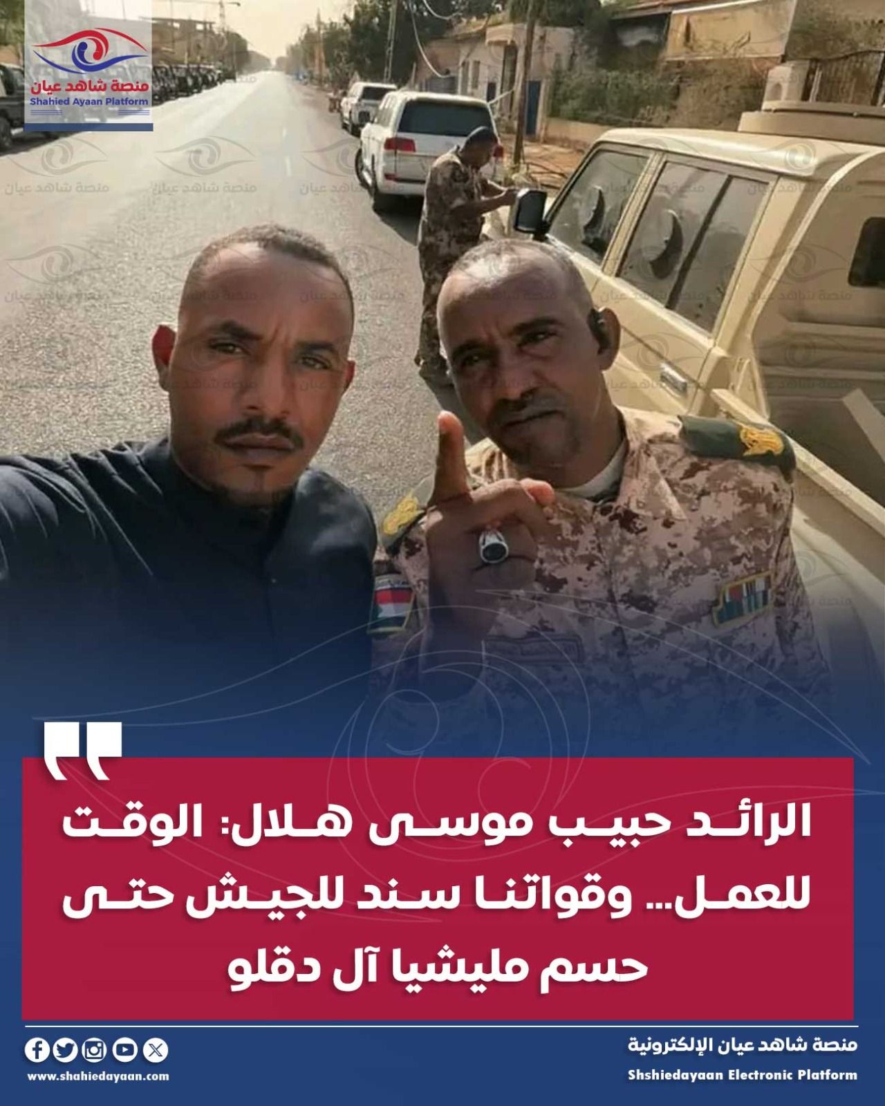 أكد الرائد حبيب موسى هلال أن الوقت قد حان للعمل لاسترداد كرامة أهل وحرائر مستريحة، مشدداً على أن قواتهم لن…