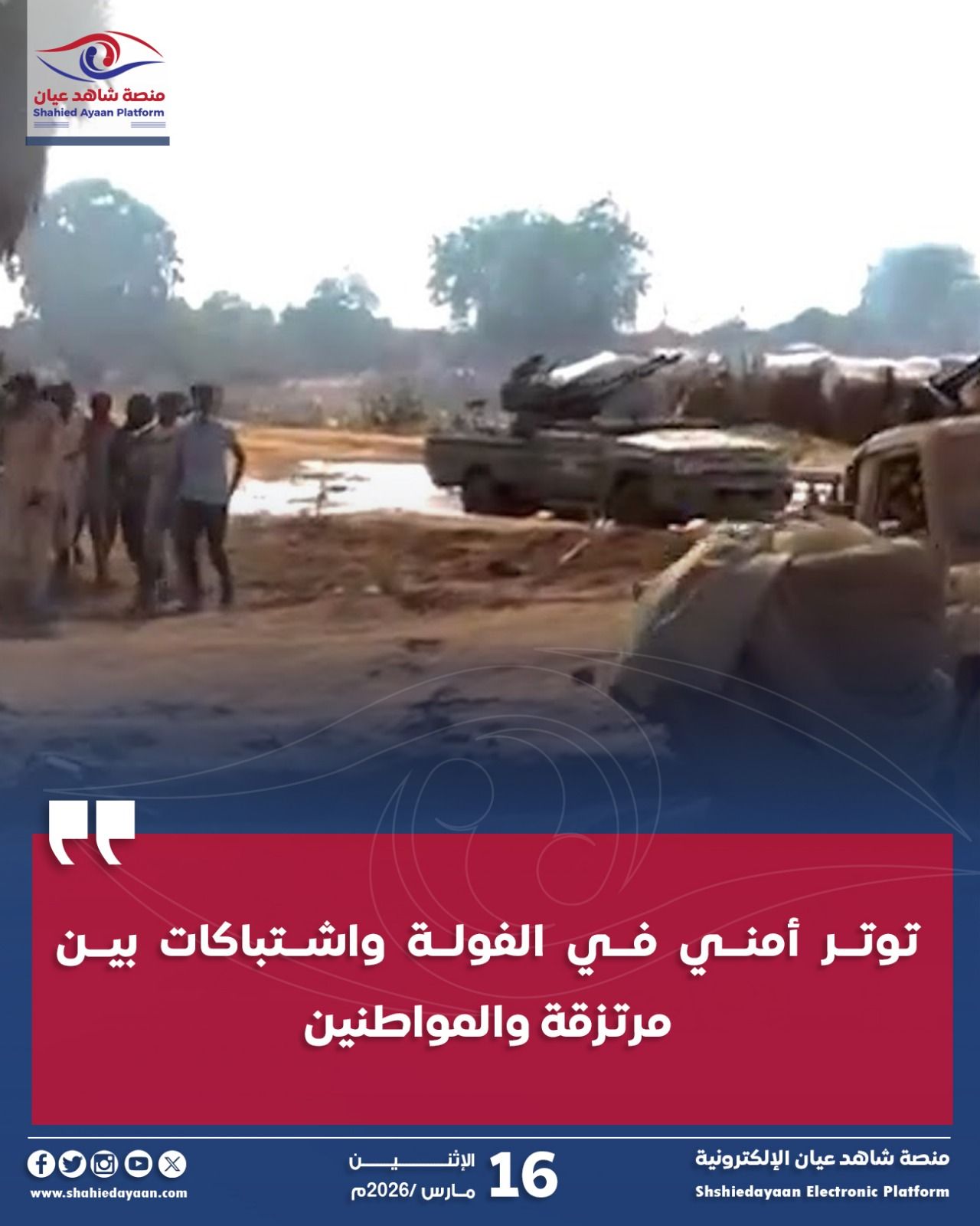أفاد مصدر محلي لمنصة “شاهد عيان” بوقوع اشتباكات اليوم 27 رمضان في مدينة الفولة بولاية غرب كردفان، بين مرتزقة من…
