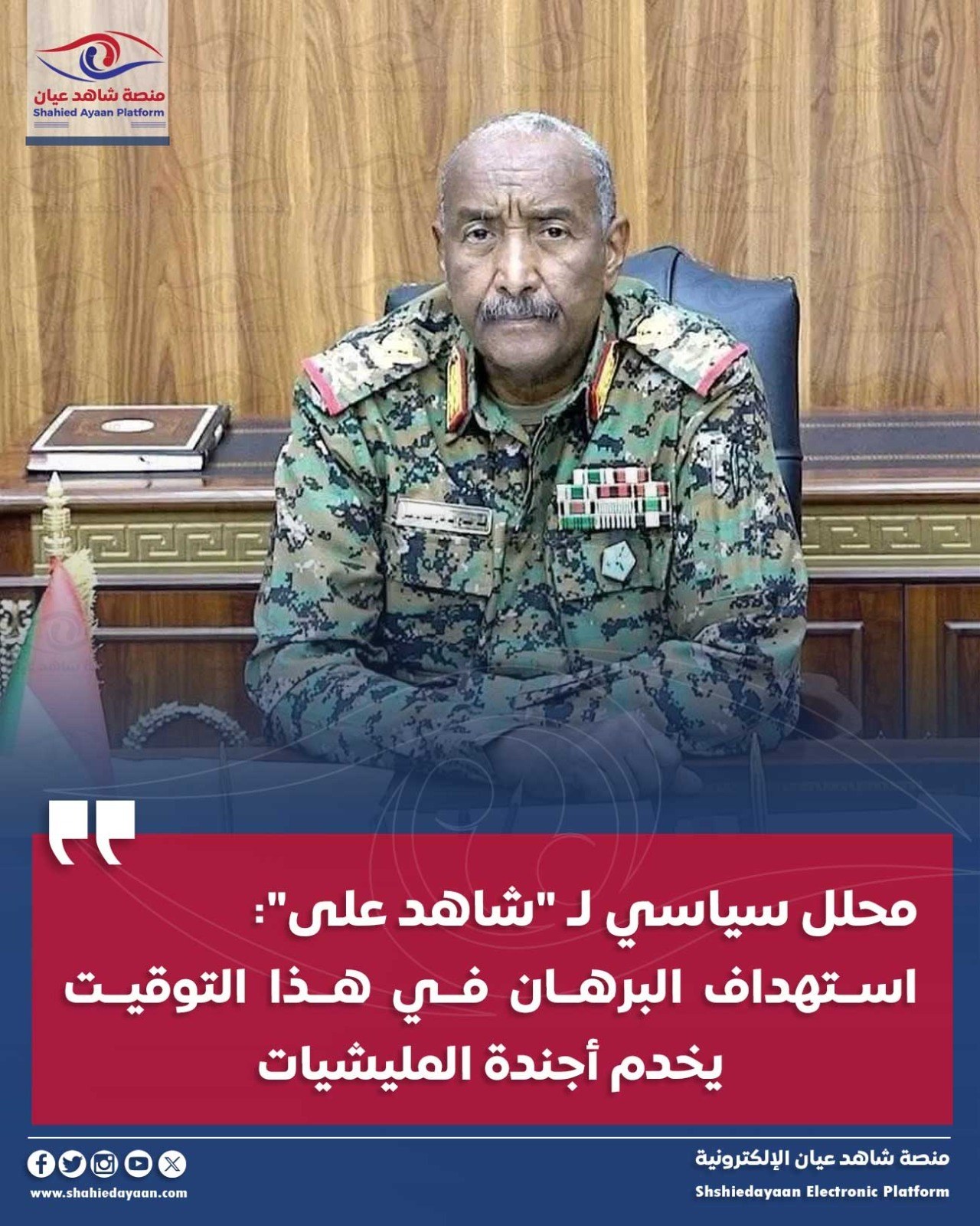 أكد محلل سياسي ل”شاهد عيان”: أن أي محاولة لتشويه قيادة الدولة، ممثلة في رمز سيادتها وعزتها الفريق أول ركن عبد…