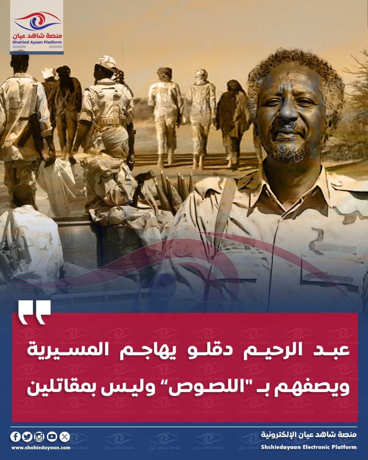 وصف القائد الثاني لمليشيا الدعم السريع، عبد الرحيم دقلو، المقاتلين من أبناء المسيرية داخل صفوف المليشيا بـ”اللصوص” و”قطاع الطرق”، وذلك…
