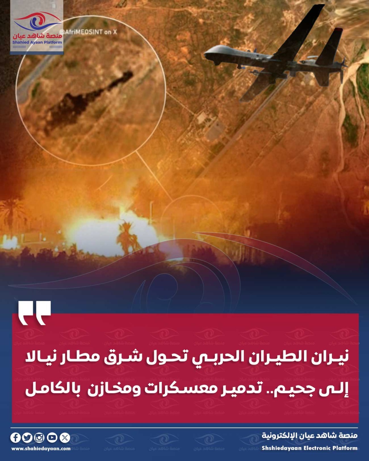 أفادت مصادر استخباراتية لـ”منصة شاهد عيان” أن الطيران الحربي نفذ ضربات مركزة استهدفت تجمعات كبيرة لمركبات عناصر مليشيا آل دقلو…