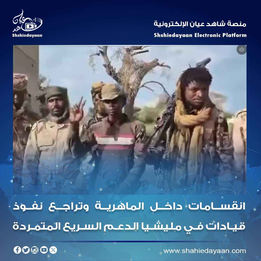 تشهد مليشيا الدعم السريع المتمردة انقسامات داخل مجموعة الماهرية المنشقة عن آل دقلو، مع تصاعد الخلافات حول مسار الحرب وتداعياتها، ما أدى إلى توقيف وملاحقة شخصيات معارضة وتراجع نفوذ قيادات ميدانية بارزة.