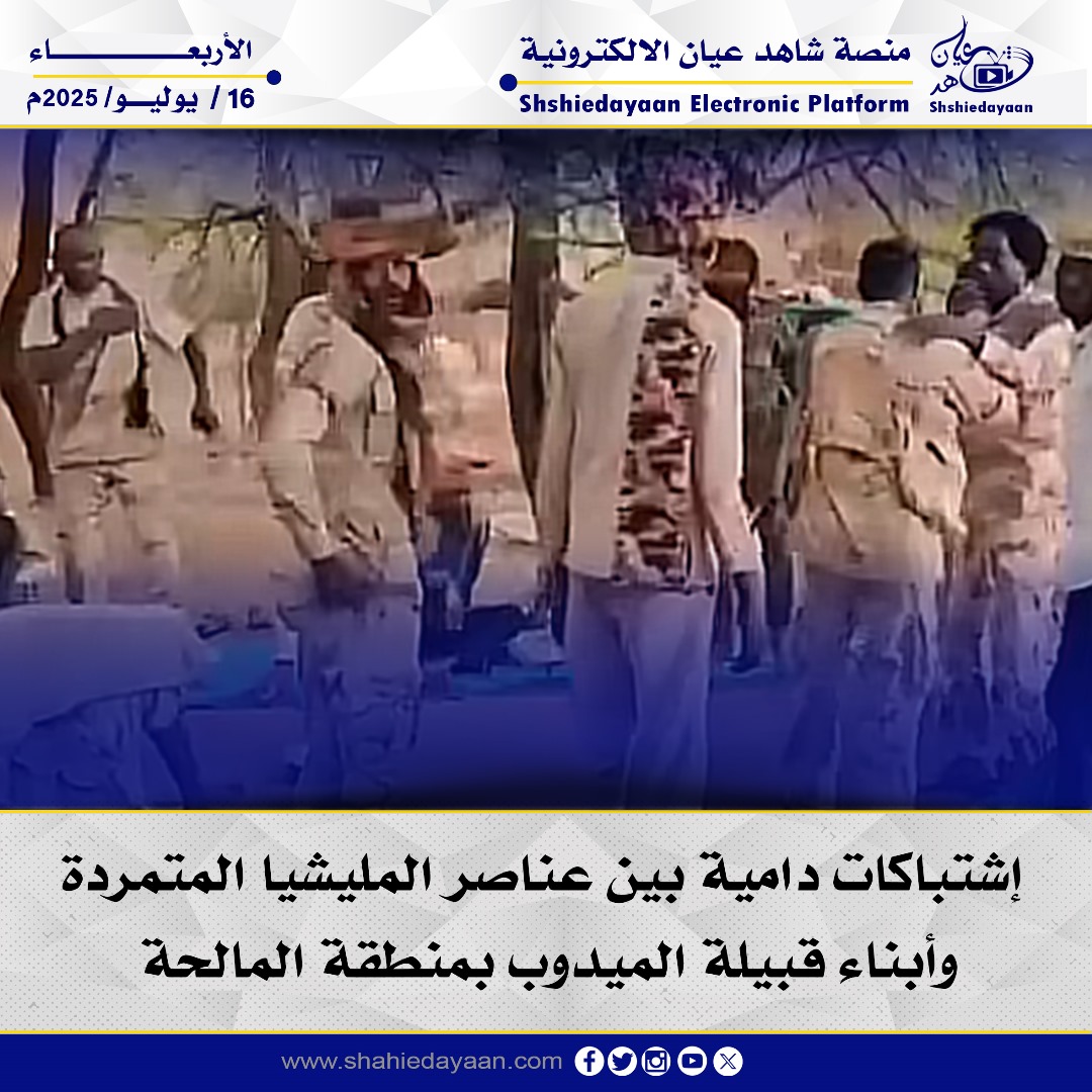 أكدت مصادر ميدانية متطابقة وقوع إشتباكات دامية بين عناصر المليشيا المتمردة وأبناء قبيلة الميدوب بمنطقة المالحة السبت ، خلقت عشرات الجرحى بين الطرفين