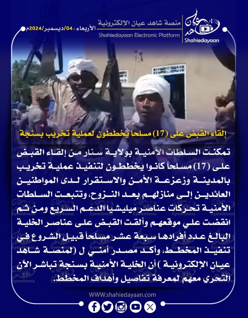 إلقاء القبض على (17) مسلحا يخططون لعملية تخريب بسنجة