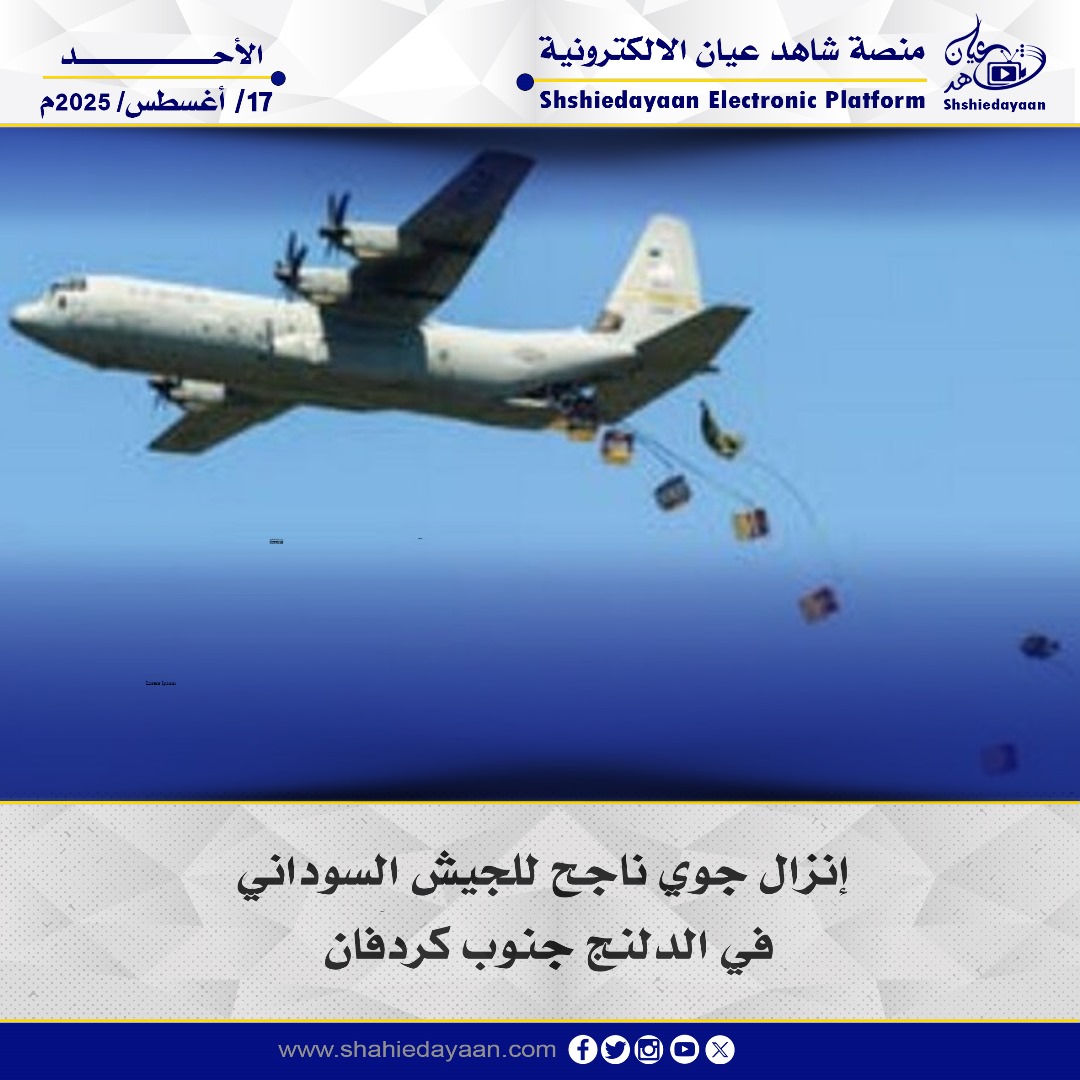 أعلن الجيش السوداني عن نجاح عملية إنزال جوي في مدينة الدلنج بولاية جنوب كردفان، في خطوة وصفتها القيادة العسكرية بأنها تمهيد لتقدم القوات البرية نحو تحقيق الفتوحات الميدانية المقبلة.