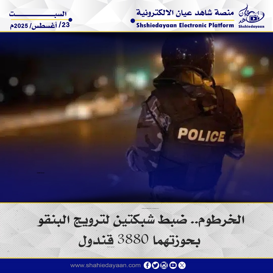 أعلنت إدارة مكافحة المخدرات بولاية الخرطوم، بالتنسيق مع جهاز المخابرات العامة، عن تفكيك شبكتين إجراميتين تنشطان في ترويج المخدرات، وضبط (3880) قندول بنقو وكمية من القطع المعدة للبيع، إلى جانب أسلحة وذخيرة، وتوقيف (7) متهمين في عمليات متزامنة بجسر الحلفايا ومنطقة الحتانة شمالي أم درمان.