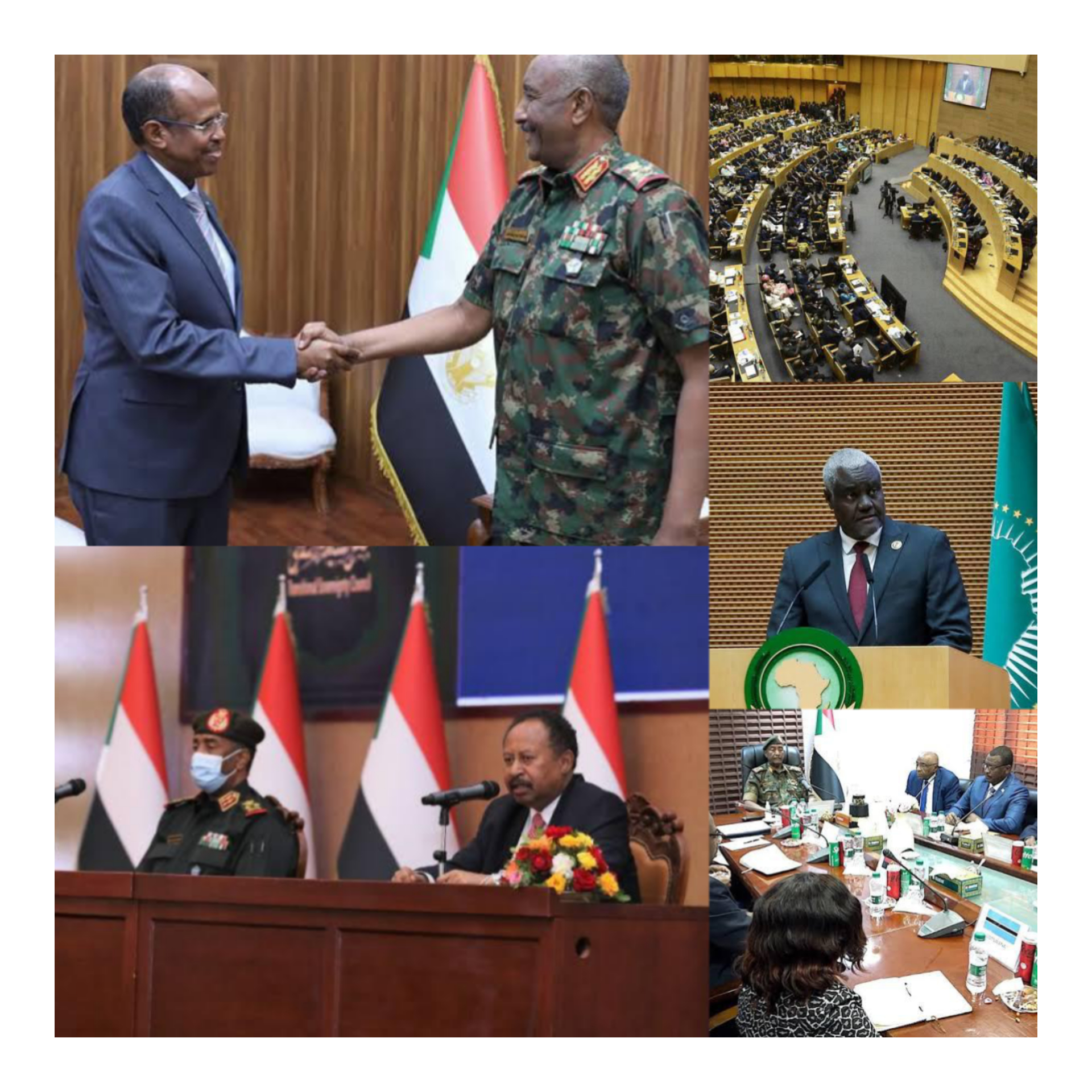 ومنذ أكتوبر من العام 2021م جمّد الاتحاد الأفريقي على خلفية الإجراءات التي اتخذها رئيس مجلس السيادة الانتقالي القائد العام للقوات المسلحة الفريق أول ركن عبد الفتاح البرهان في الخامس والعشرين من أكتوبر من العام 2021م والتي فضّ بموجبها شراكة المؤسسة العسكرية مع المكوِّن المدني الذي كان يقوده تحالف قوى الحرية والتغيير – المجلس المركزي، حيث تم حل مجلسي السيادة والوزراء وفرض حال الطوارئ في البلاد، الأمر الذي اعتبره الاتحاد الأفريقي انقلاباً عسكرياً، إذ تشدد المادة 30 من القانون التأسيسي للاتحاد الأفريقي بعدم السماح للحكومات التي تصل إلى السلطة بطرق غير دستورية بالمشاركة في أنشطة الاتحاد، كما يرفض “إعلان لومي” الذي أقره الاتحاد الأفريقي، في العام 2000م، التغييرات غير الدستورية للحكومات، كما أن الميثاق الأفريقي للديمقراطية والانتخابات والحكم، الصادر في العام 2007م، يعتبر التغييرات غير الدستورية تهديداً خطيراً للسلم والأمن والتنمية.