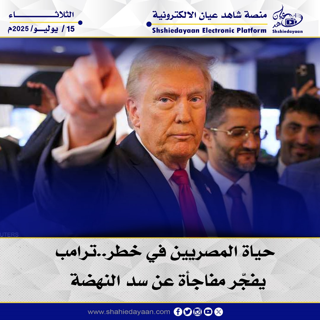 وأكد الرئيس الأمريكي أن المياه هي شريان الحياة الأساسي للمصريين، وبالتالي فإن المساس بحصتهم المائية عبر مشروع سد النهضة يمثل تهديدًا حقيقيًا لملايين المواطنين، مشددًا على أن بلاده لن تقف مكتوفة الأيدي أمام هذا الخطر.
