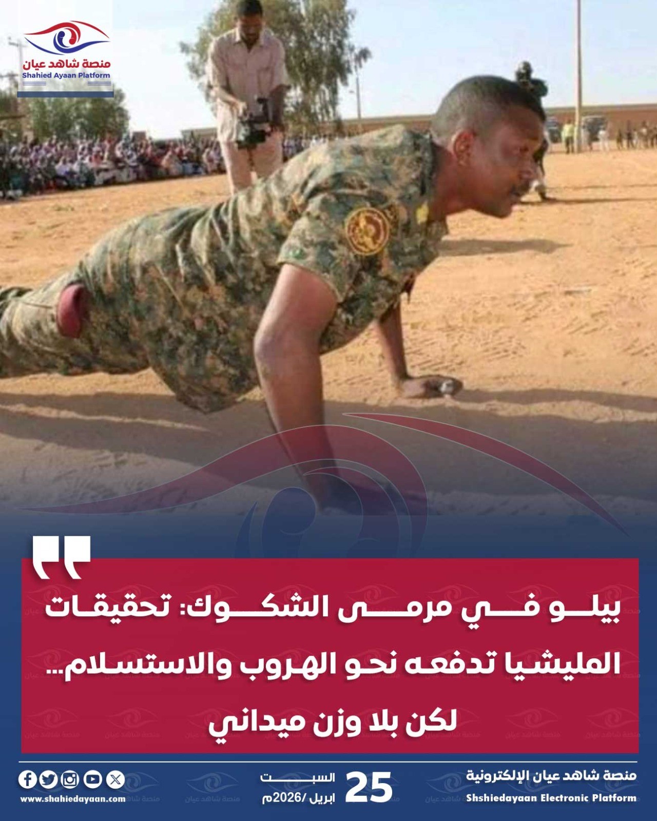 الأخبار مليشيا آل دقلو تتبادل الأدوار: الإعلامي كابوري ينجو من رصاص زملائه وسكان نيالا يتولون مهمة الحماية شاهد عيان أبريل 24, 2026