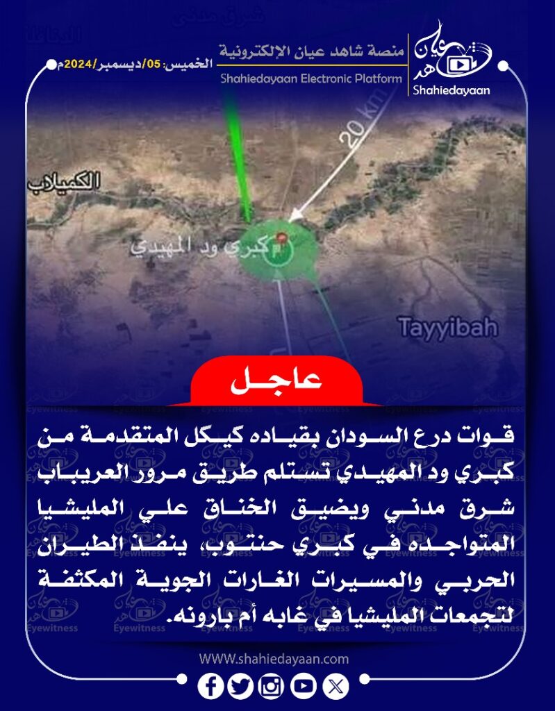 الأخبار خبر في صورة عاجل…..قوات درع السودان بقيادة كيكل المتقدمة من كبري ود المهيدي تستلم طريق مرور العريباب شرق مدني شاهد عيان ديسمبر 5, 2024 0