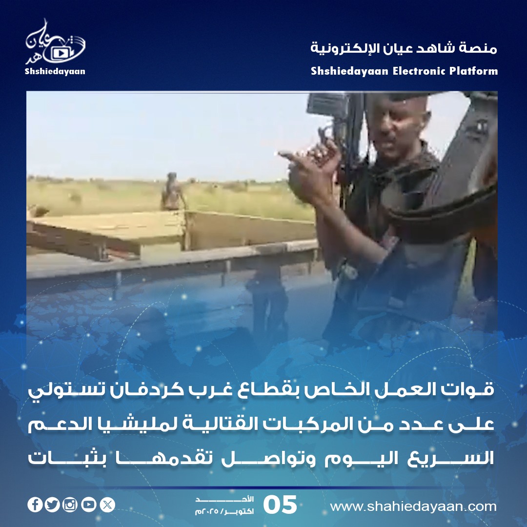 قوات العمل الخاص بقطاع غرب كردفان تستولي على عدد من المركبات القتالية لمليشيا الدعم السريع اليوم وتواصل تقدمها بثبات، مع استمرار الزحف باتجاه أهدافها المحددة.