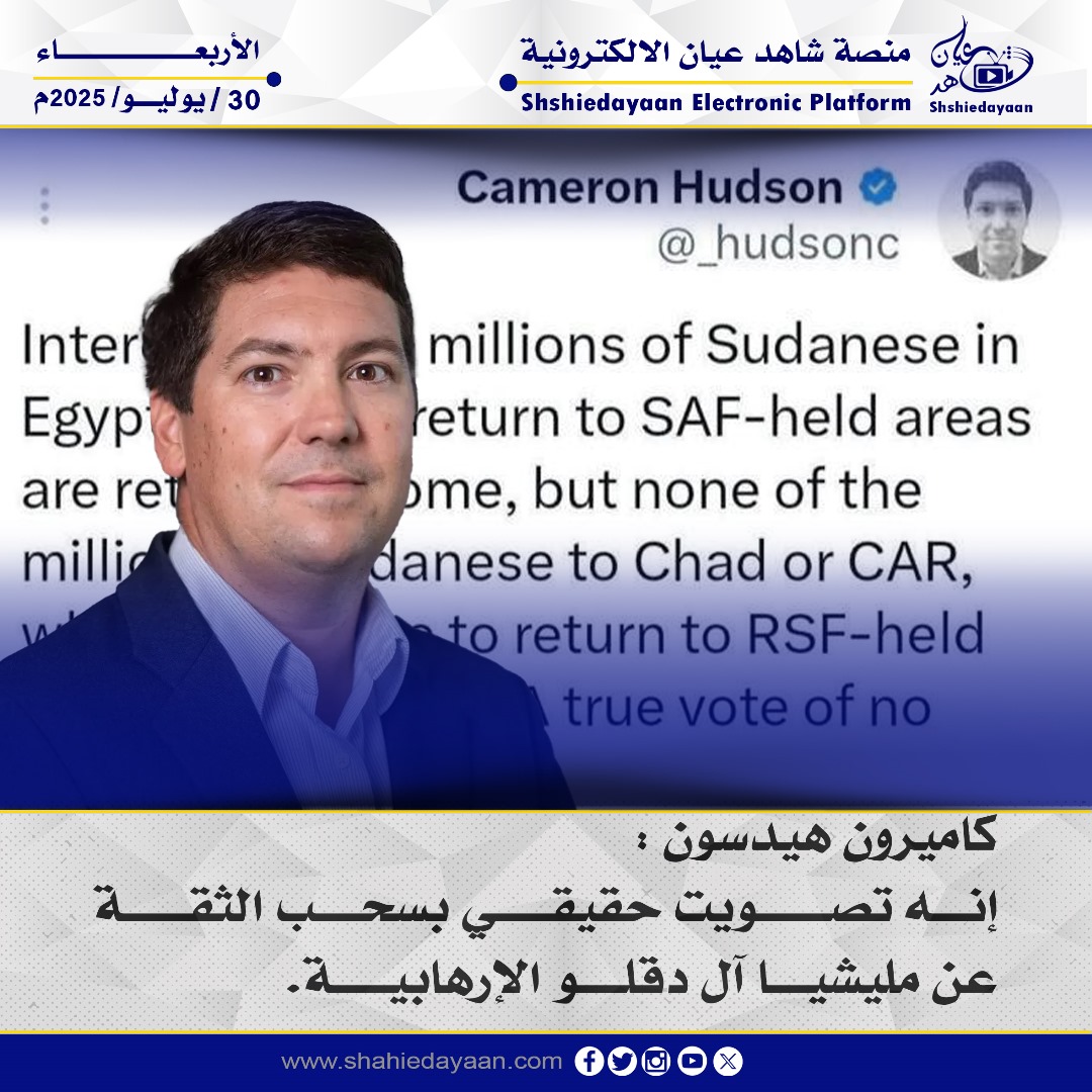 كاميرون هيدسون : إنه تصويت حقيقي بسحب الثقة عن مليشيا آل دقلو الإرهابية.