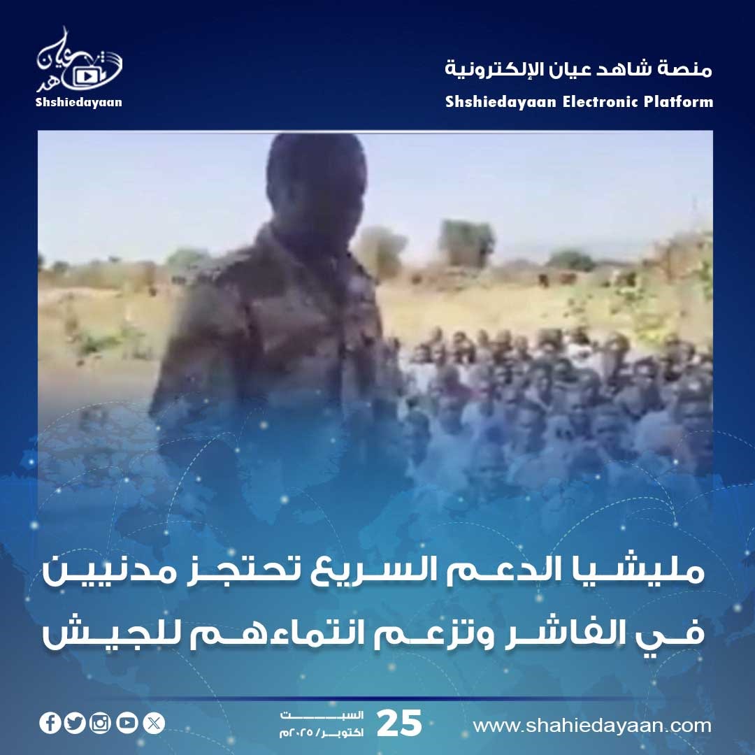 مليشيا الدعم السريع تحتجز مدنيين في الفاشر وتزعم انتمائهم للجيش