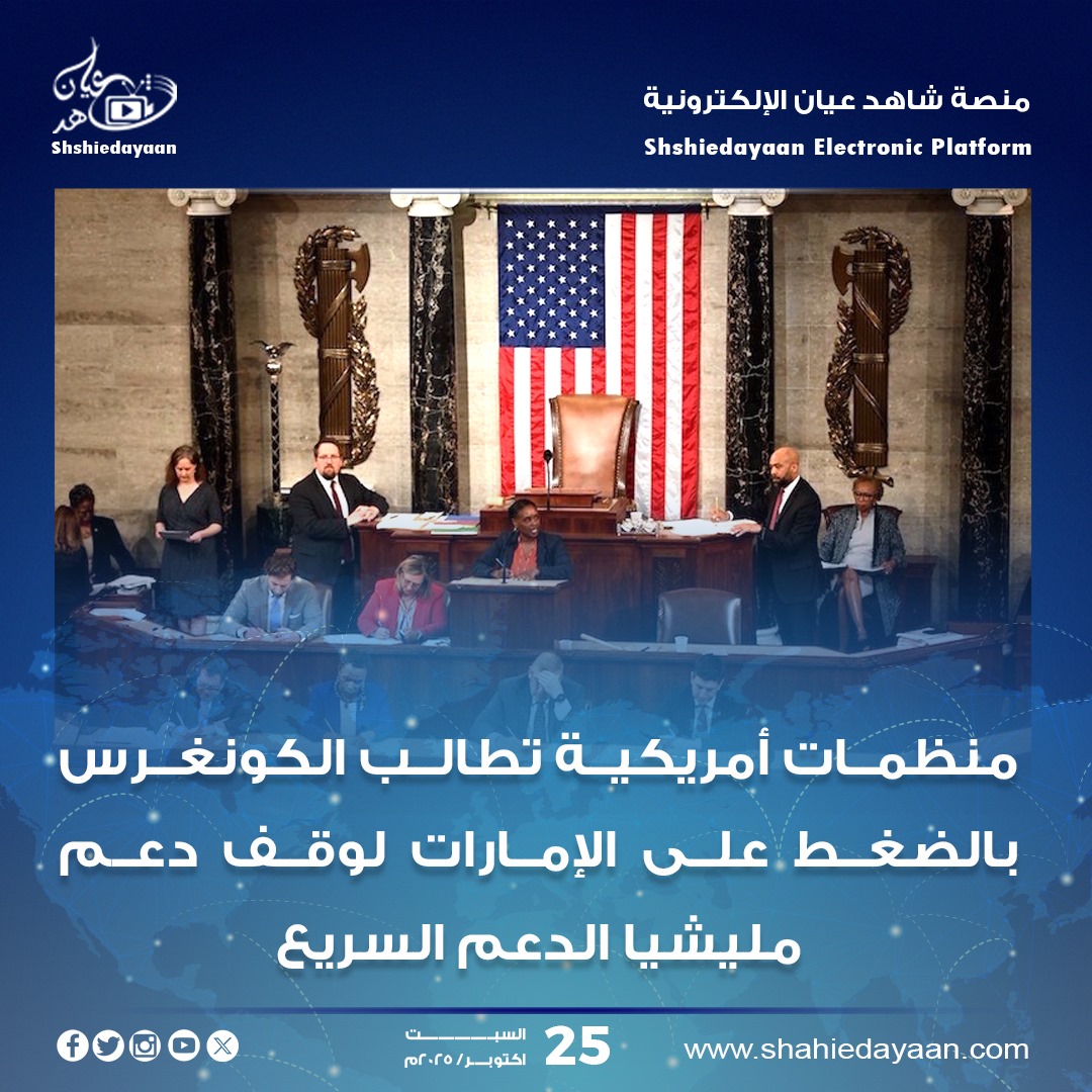 منظمات امريكية تطالب الكونغرس بالضغط على الامارات لوقف دعم مليشيا الدعم السريع