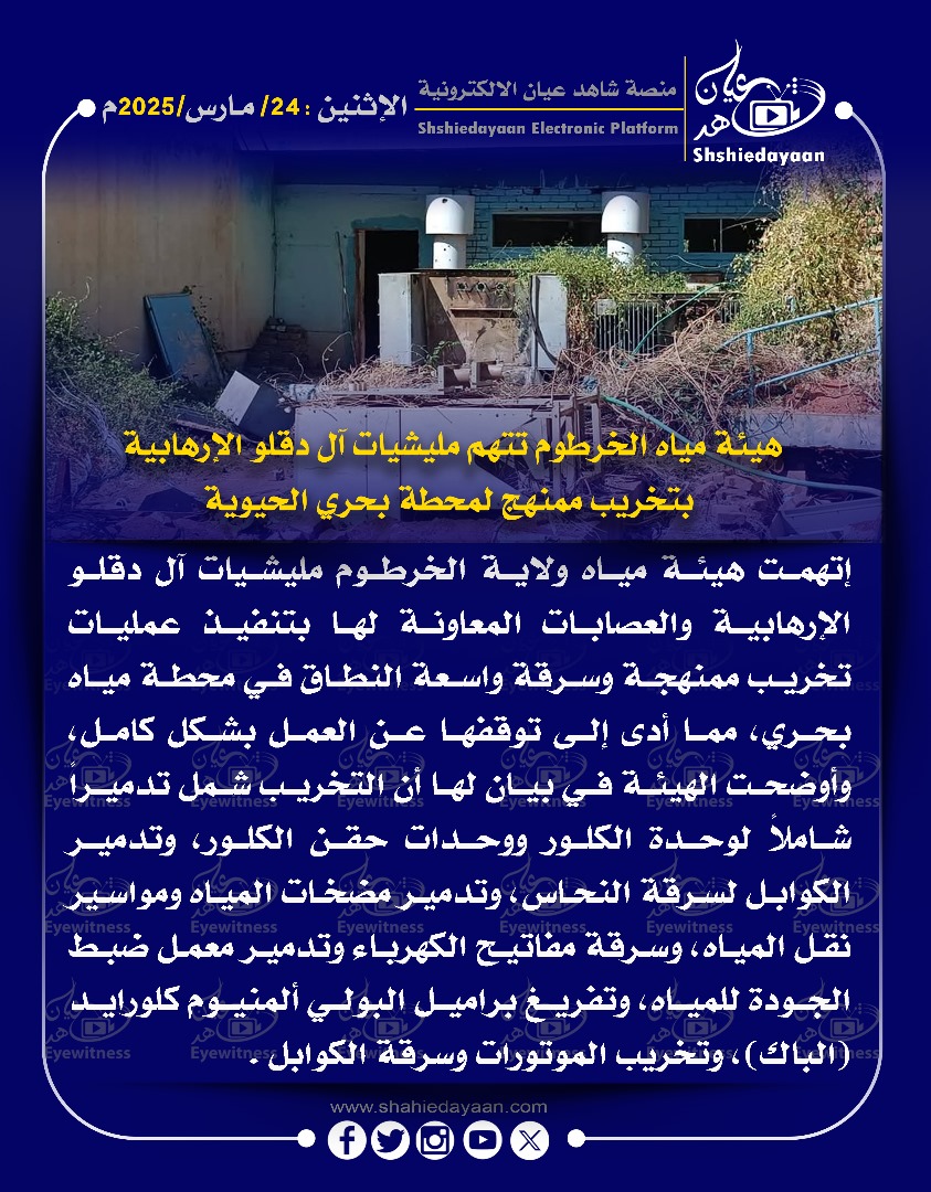 الرئيسية|خبر في صورة|هيئة مياه الخرطوم تتهم مليشيات آل دقلو الإرهابية بتخريب ممنهج لمحطة بحري الحيوية خبر في صورةالأخبار هيئة مياه الخرطوم تتهم مليشيات آل دقلو الإرهابية بتخريب ممنهج لمحطة بحري الحيوية شاهد عيان تابع على X مارس 24, 20250 0 أقل من دقيقة نسخ الرابط تم نسخ الرابط شاهد عيان تابع على X مارس 24, 20250 0 أقل من دقيقة فيسبوك X ماسنجر ماسنجر واتساب تيلقرام مشاركة عبر البريد طباعة