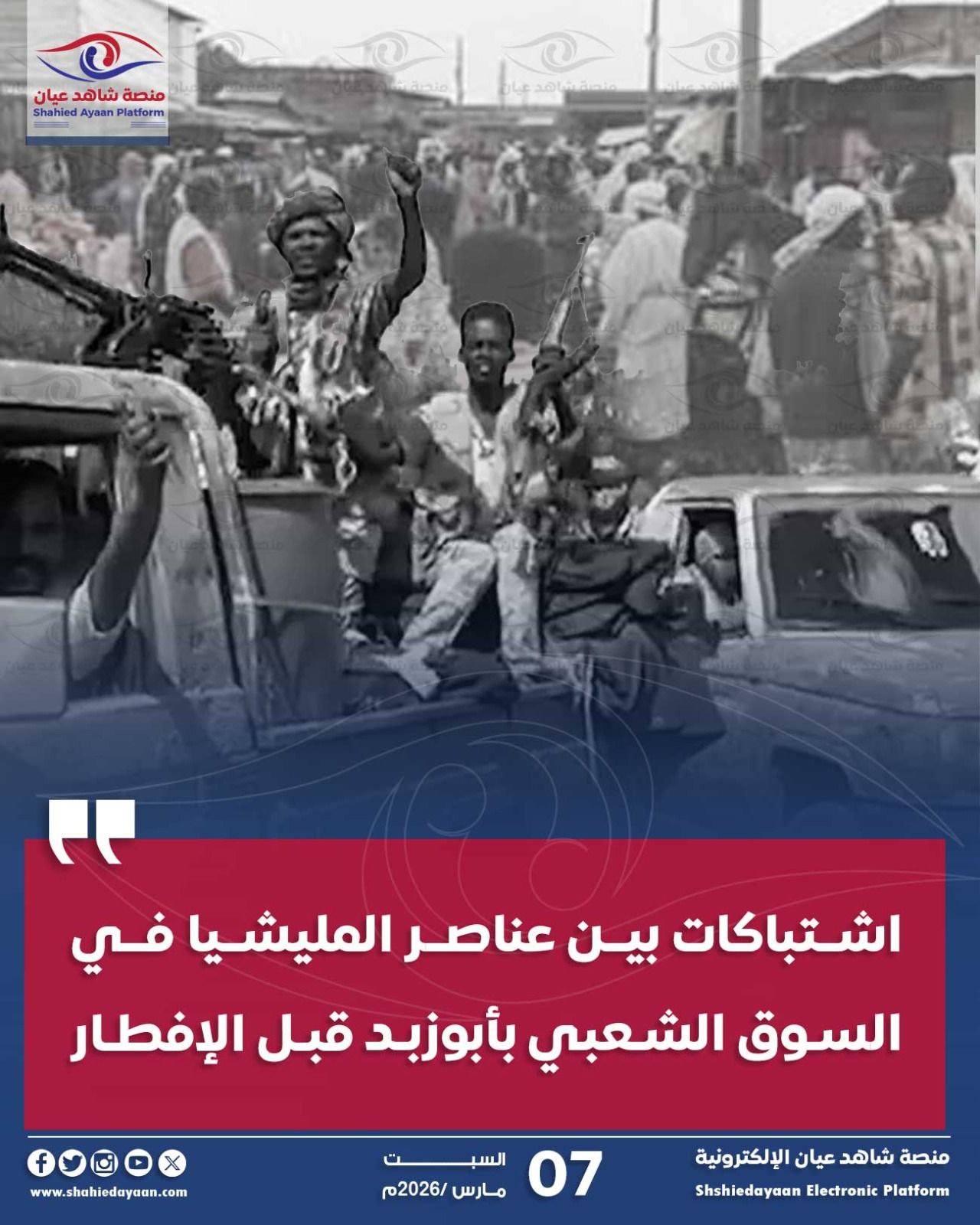 • اشتباكات بين عناصر المليشيا في السوق الشعبي بأبوزبد قبل الإفطار