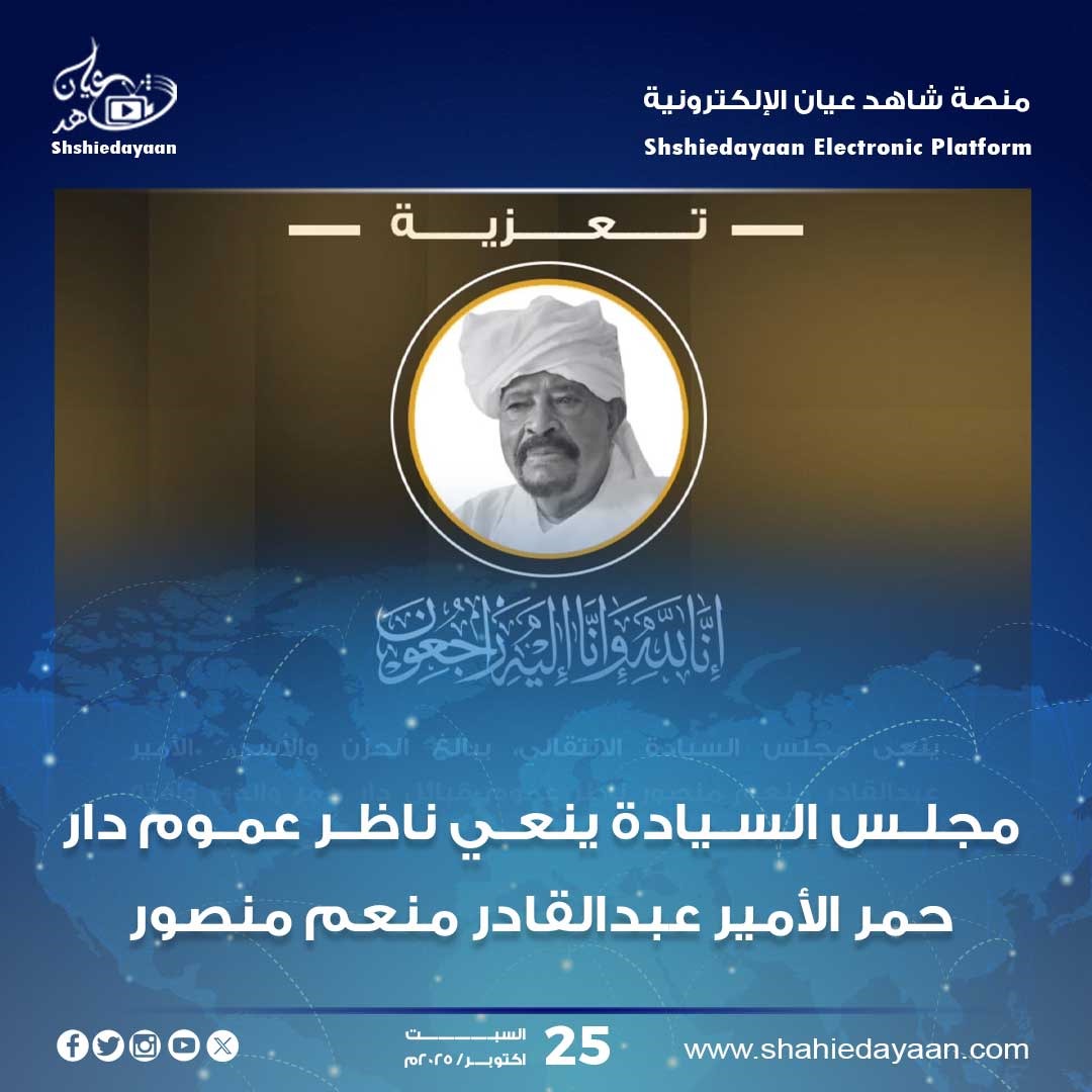 مجلس السيادة ينعي ناظر عموم دار حمر الأمير عبدالقادر منعم منصور