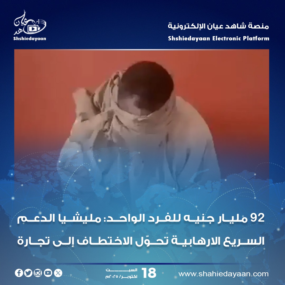 92 مليار جنيه للفرد الواح مليشيا الدعم السريع الارهابية تحول الاختطاف الي تجارة