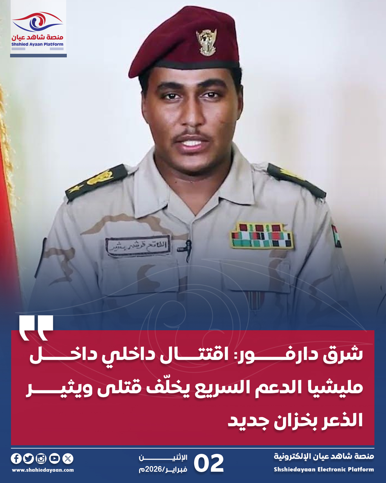 شرق دارفور: اقتتال داخلي داخل الدعم السريع يخلّف قتلى ويثير الذعر بخزان جديد اندلعت، الاثنين، مواجهات مسلّحة بين عناصر من…