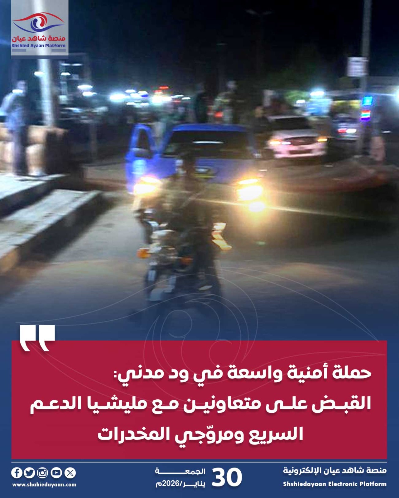 متابعات | شاهد عيان حملة أمنية واسعة في ود مدني: القبض على متعاونين مع مليشيا الدعم السريع ومروّجي المخدرات. نفّذت…