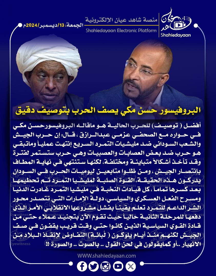 خبر في صورة الأخبار البروفيسور حسن مكي يصف الحرب بتوصيف دقيق شاهد عيان ديسمبر 13, 2024 0 أقرأ المزيد ..