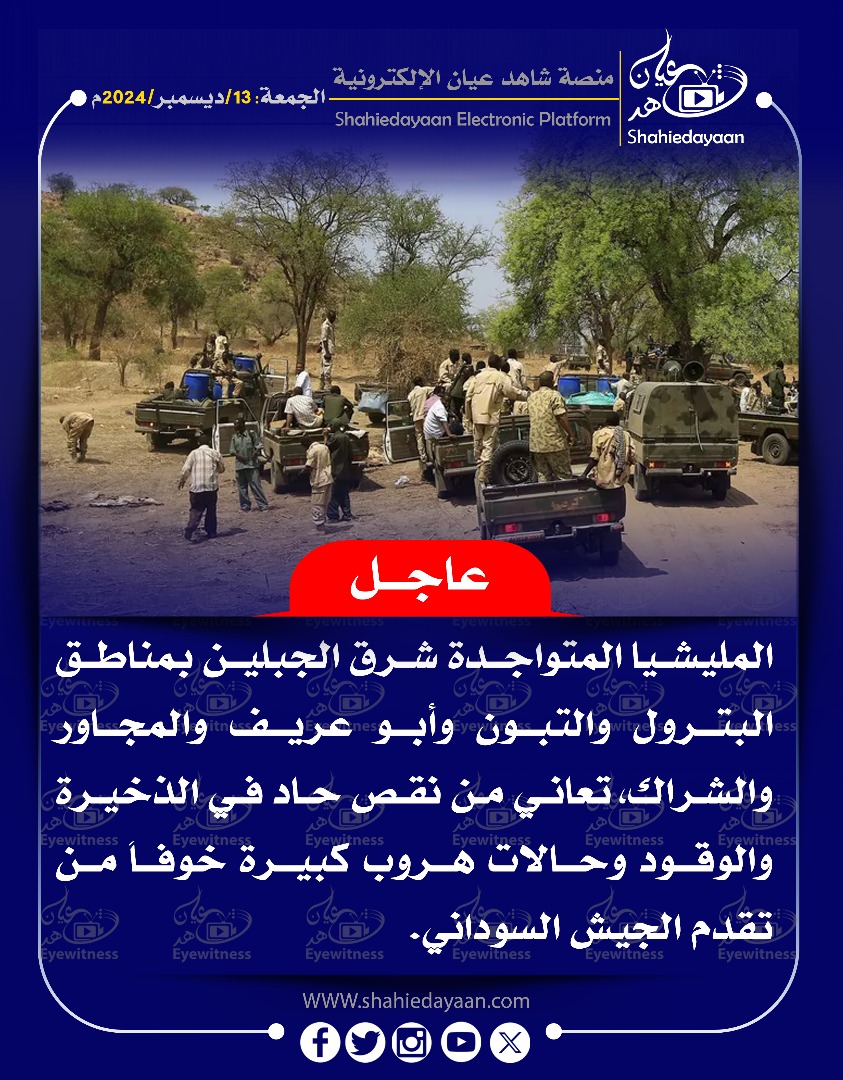 خبر في صورة الأخبار المليشيا المتواجدة شرق الجبلين بمناطق البترول والتبون وأبو عريف والمجاور والشراك، شاهد عيان ديسمبر 13, 2024 0 أقرأ المزيد ..