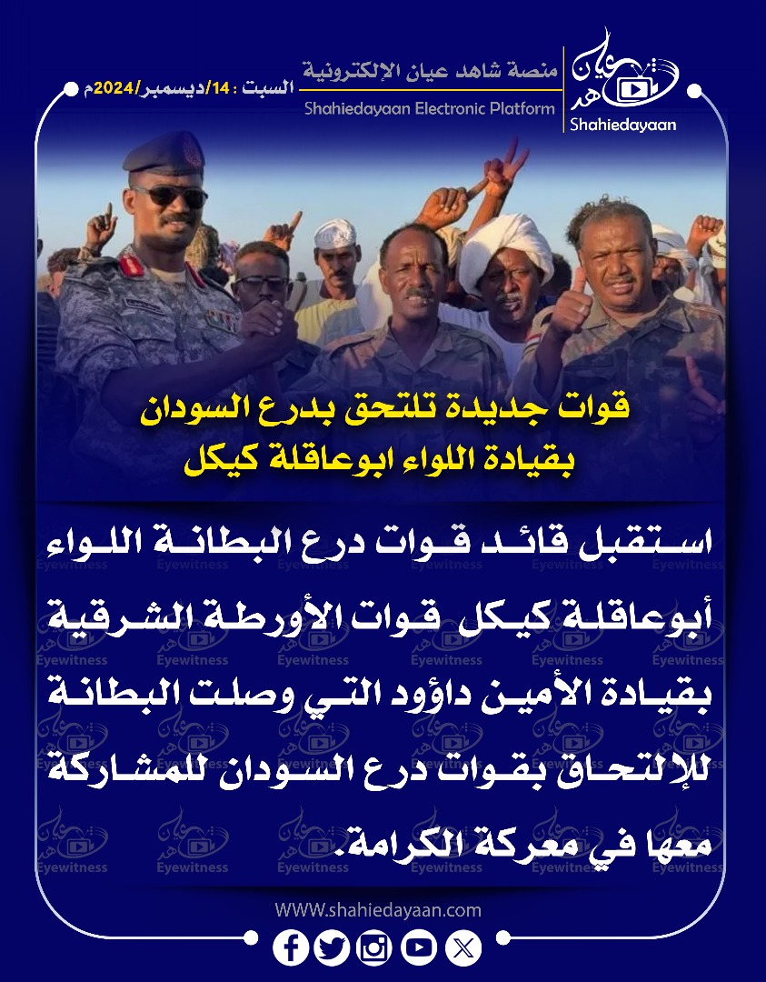 خبر في صورة الأخبار قوات جديدة تلتحق بدرع السودان بقيادة اللواء ابو عاقلة كيكل شاهد عيان ديسمبر 14, 2024 0 أقرأ المزيد ..
