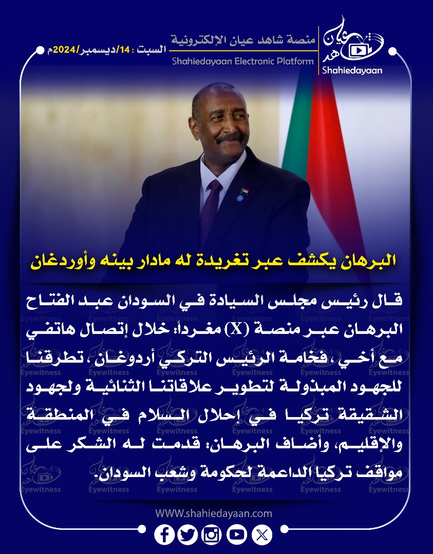 خبر في صورة الأخبار البرهان يكشف عبر تغريدة له مادار بينه وأوردغان شاهد عيان ديسمبر 14, 2024 0 أقرأ المزيد ..