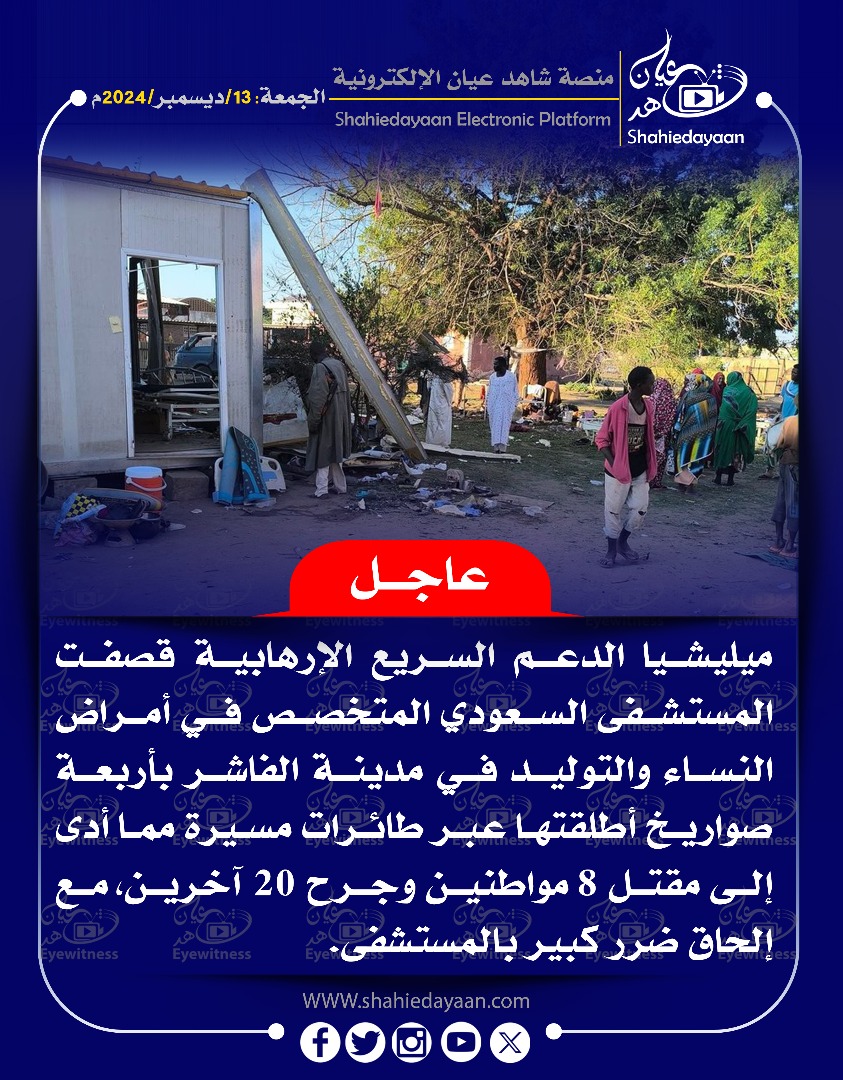 خبر في صورة الأخبار ميليشيا الدعم السريع الإرهابية قصفت المستشفى السعودي بالفاشر شاهد عيان ديسمبر 13, 2024 0 أقرأ المزيد ..