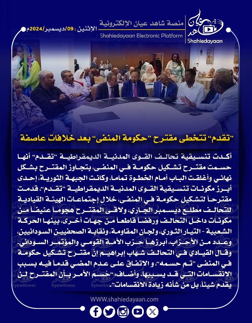 الأخبار خبر في صورة تقدم“ تتخطى مقترح “حكومة المنفى” بعد خلافات عاصفة شاهد عيان ديسمبر 9, 2024 0 أقرأ المزيد ..
