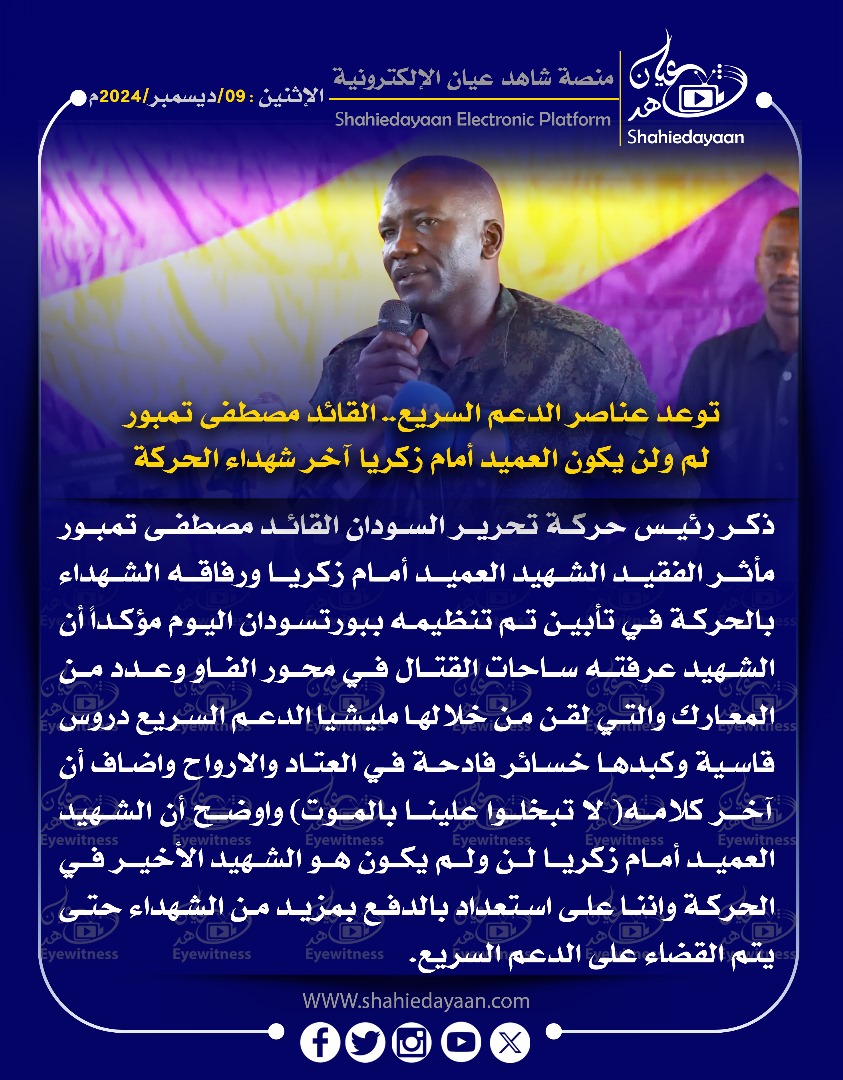 الأخبار خبر في صورة توعد عناصر الدعم السريع القائد مصطفى تمبور لم ولن يكون العميد أمام زكريا آخر شهداء الحركة شاهد عيان ديسمبر 9, 2024 0 أقرأ المزيد ..