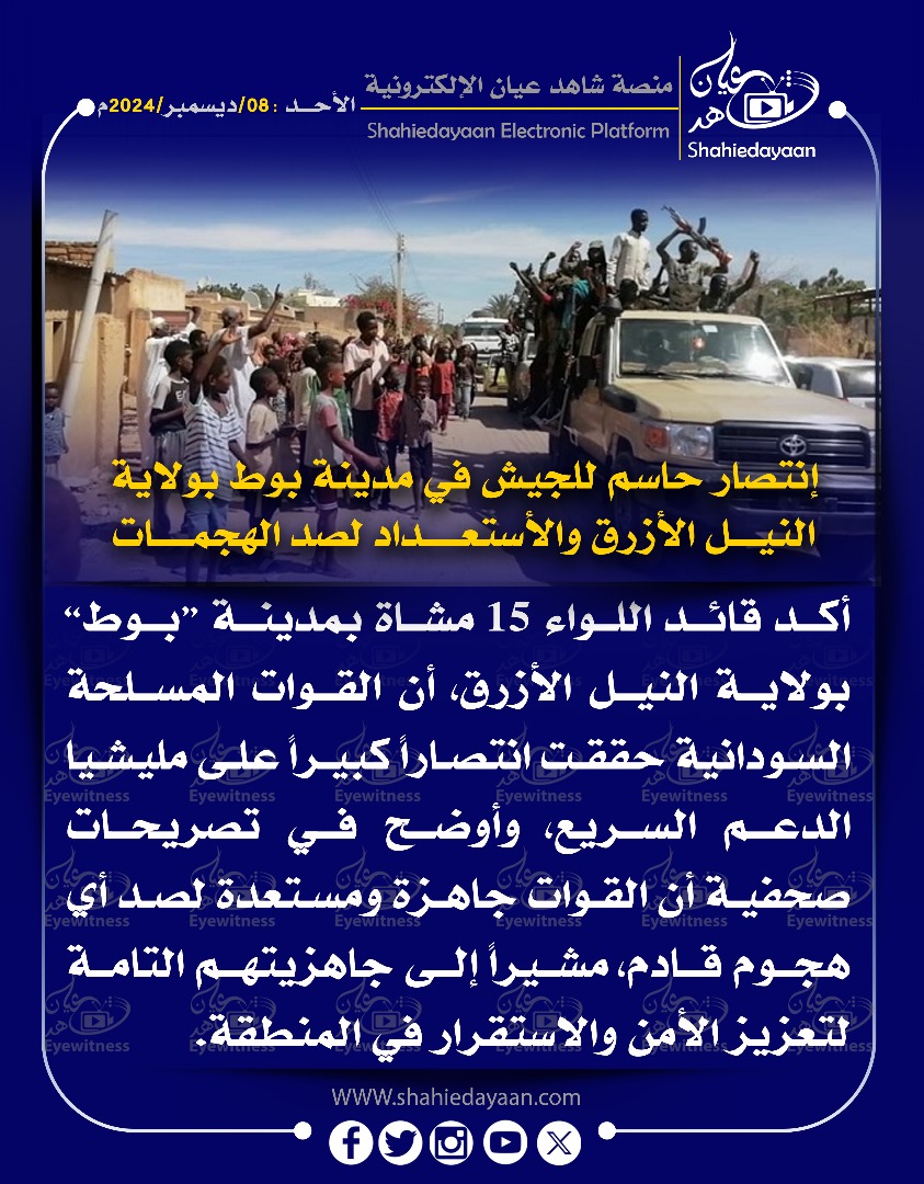 الأخبار خبر في صورة إنتصار حاسم للجيش في مدينة بوط بولاية النيل الأزرق والأستعداد لصد الهجمات شاهد عيان ديسمبر 8, 2024 0 أقرأ المزيد ..