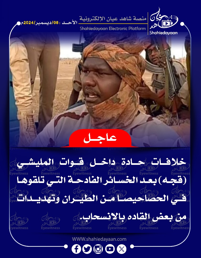 الأخبار خبر في صورة عاجل…..خلافات حادة داخل قوات المليشي (قجه) شاهد عيان ديسمبر 8, 2024 0 أقرأ المزيد ..