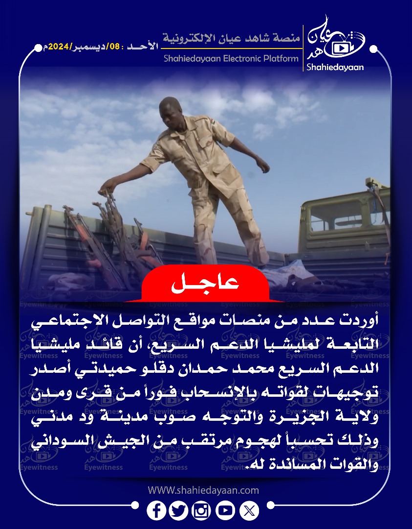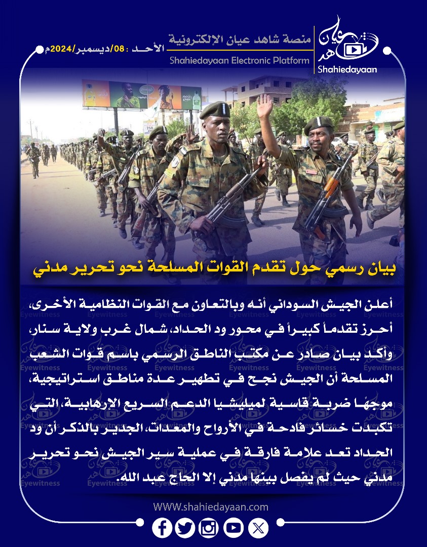 الأخبار خبر في صورة عاجل….القوات المسلحة السودانية تسيطر على ود الحداد في محور ود مدني شاهد عيان ديسمبر 8, 2024 0 أقرأ المزيد ..