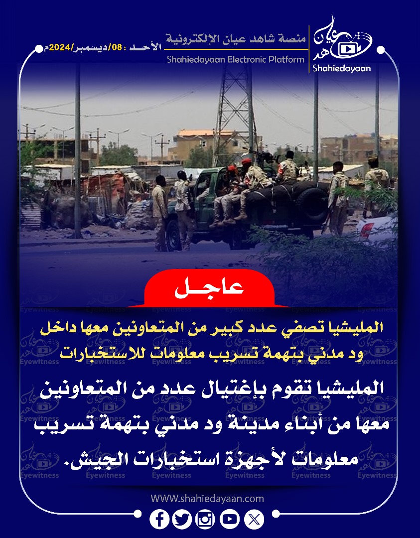 الأخبار خبر في صورة عاجل…..المليشيا تصفي عدد كبير من المتعاونين معها داخل ود مدنی بتهمة تسريب معلومات للاستخبارات شاهد عيان ديسمبر 8, 2024 0 أقرأ المزيد ..