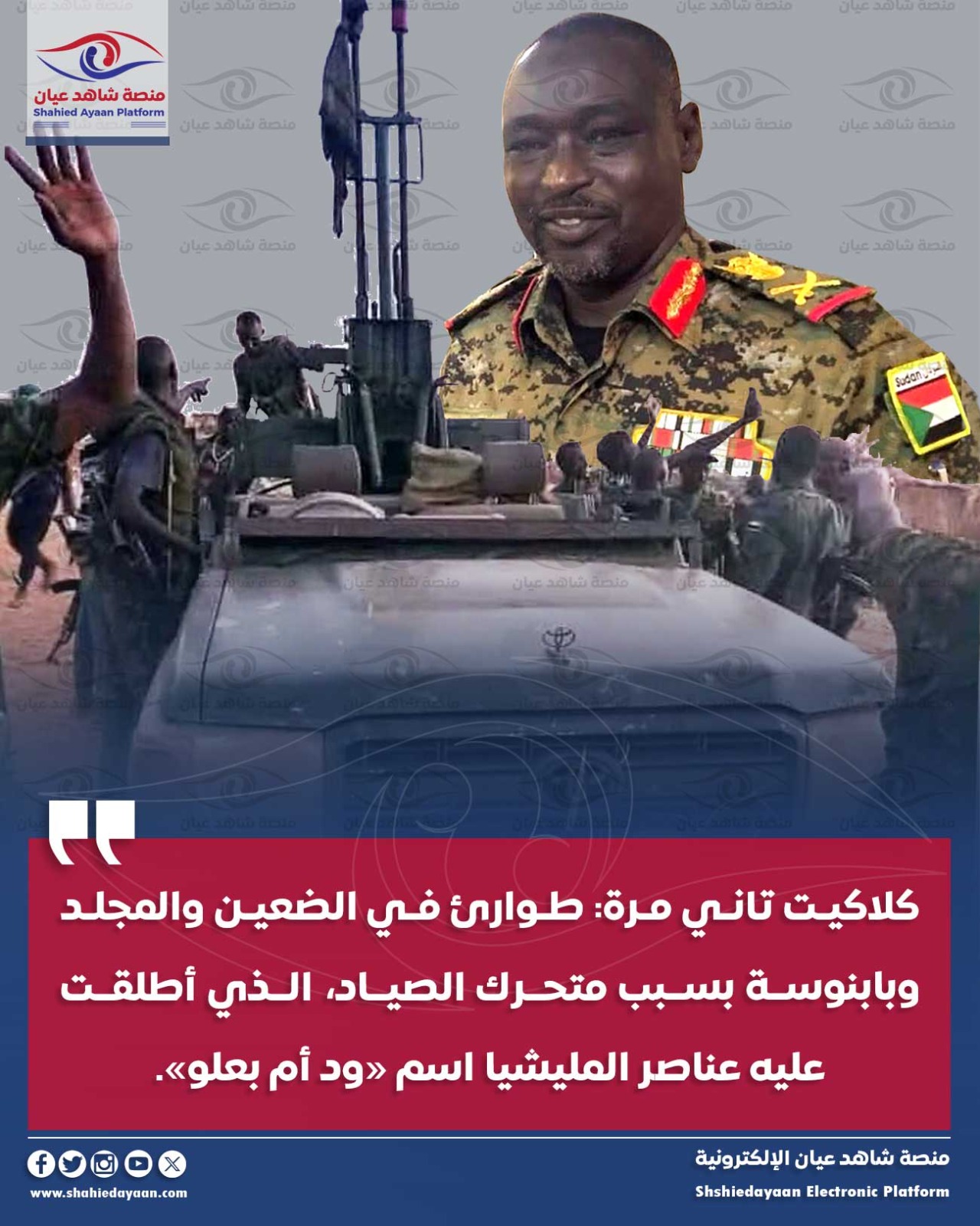 خاص | شاهد عيان كلاكيت تاني مرة طوارئ في الضعين والمجلد وبابنوسة بسبب متحرك الصياد، الذي أطلقت عليه عناصر المليشيا…