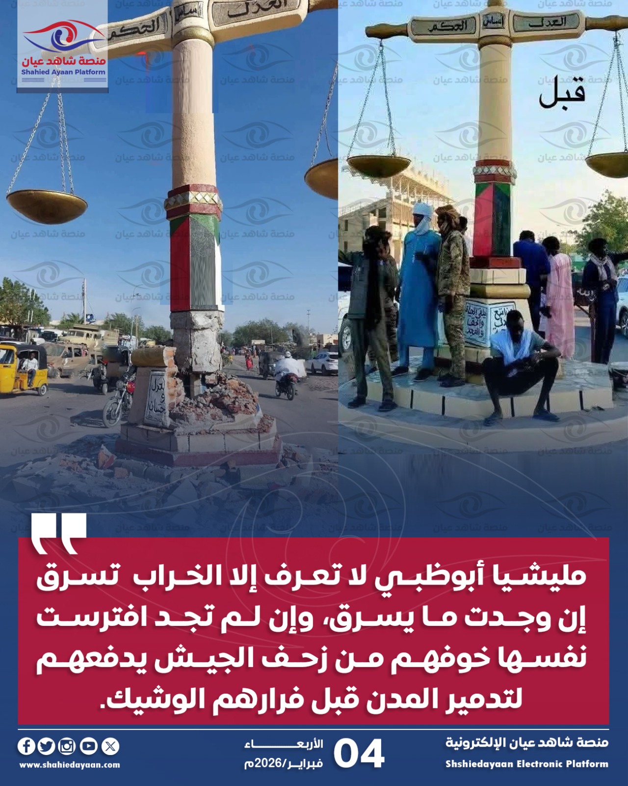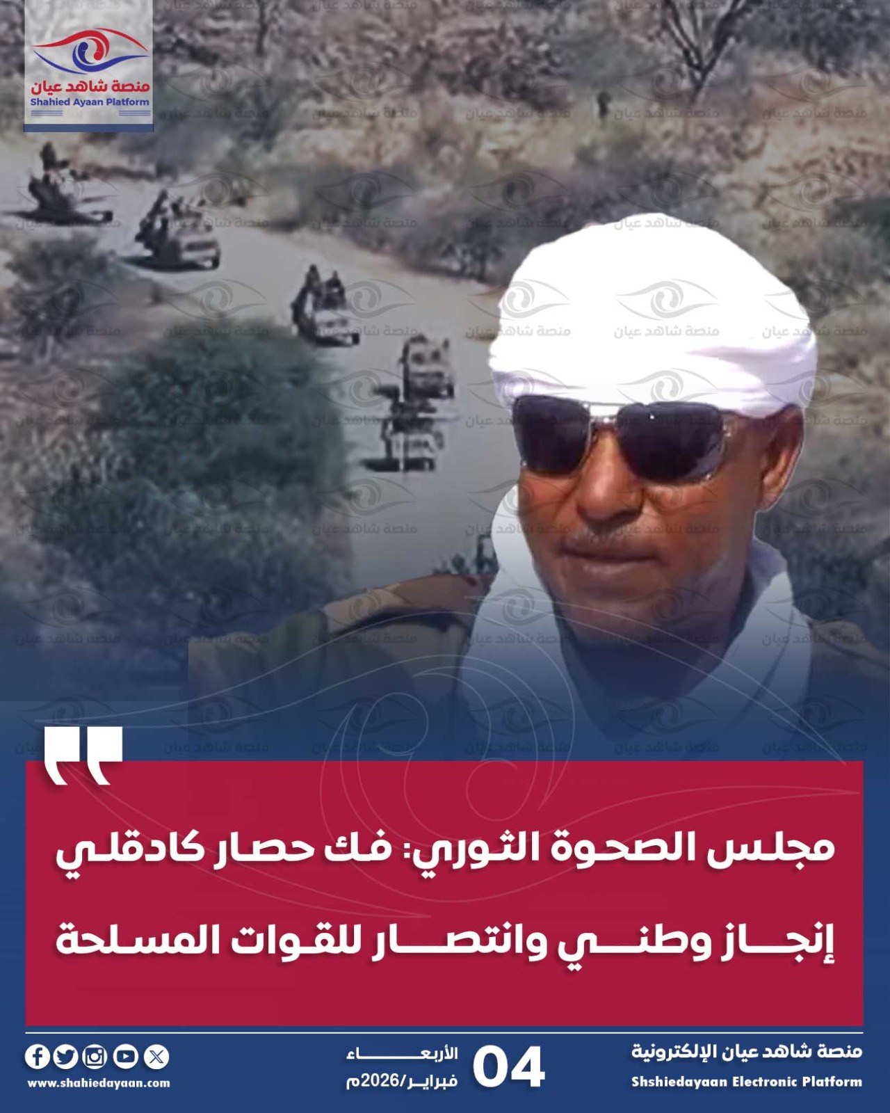 بسم الله الرحمن الرحيم القيادة العامة للقوات المسلحة ٠٣ فبراير ٢٠٢٦م بيان قال تعالى: ﴿إِنْ تَنْصُرُوا اللَّهَ يَنْصُرْكُمْ وَيُثَبِّتْ أَقْدَامَكُمْ﴾…