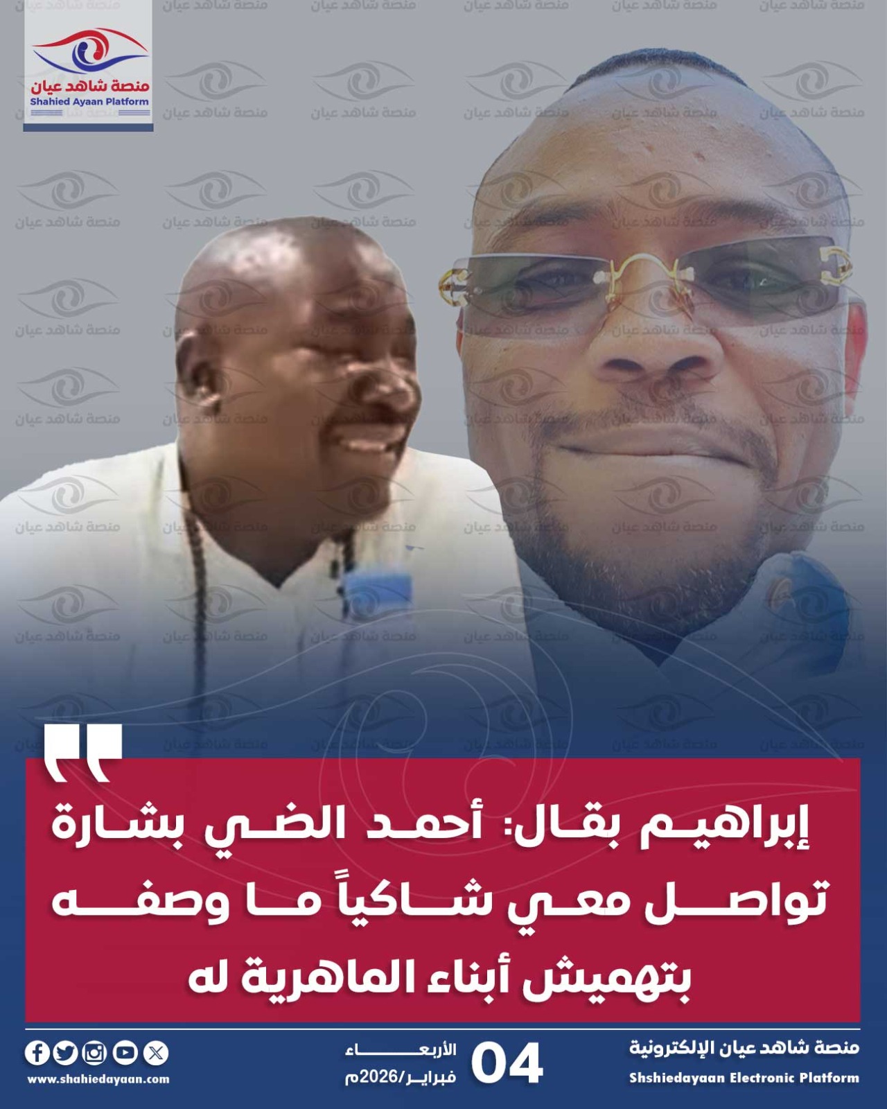 إبراهيم بقال: أحمد الضي بشارة تواصـــل معي شــاكياً مــا وصفــــه بتهميش أبناء الماهرية له أفاد إبراهيم بقال بأن أحمد الضي…