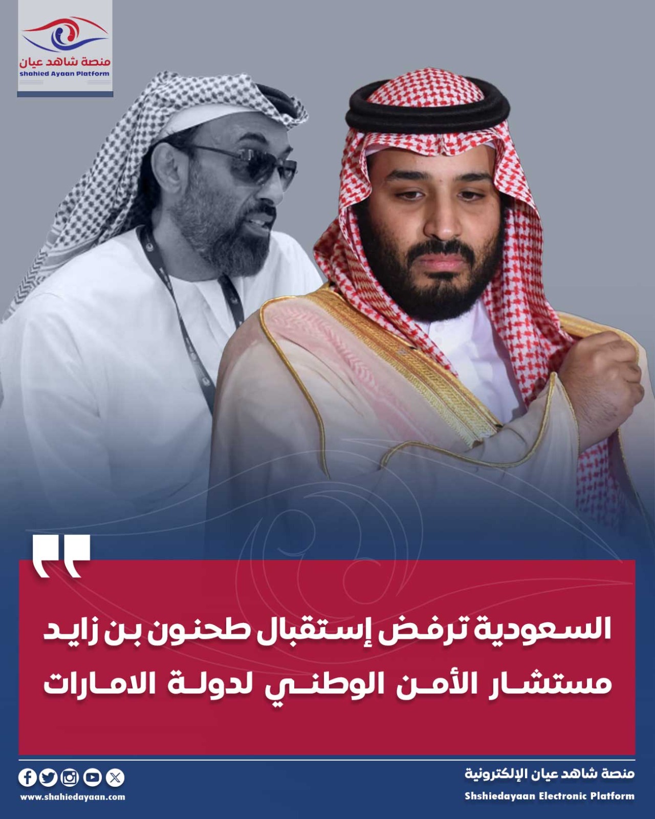 خاص | شاهد عيان السعودية ترفض إستقبال طحنون بن زايد مستشار الأمن الوطني لدولة الإمارات القرار يتطابق تماماً مع سياسات…