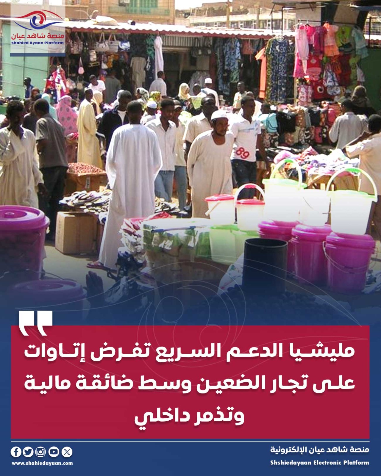 خاص – شاهد عيان: فرضت مليشيا الدعم السريع في مدينة الضعين رسوماً على أصحاب المحلات التجارية، حيث ألزمت كل صاحب…