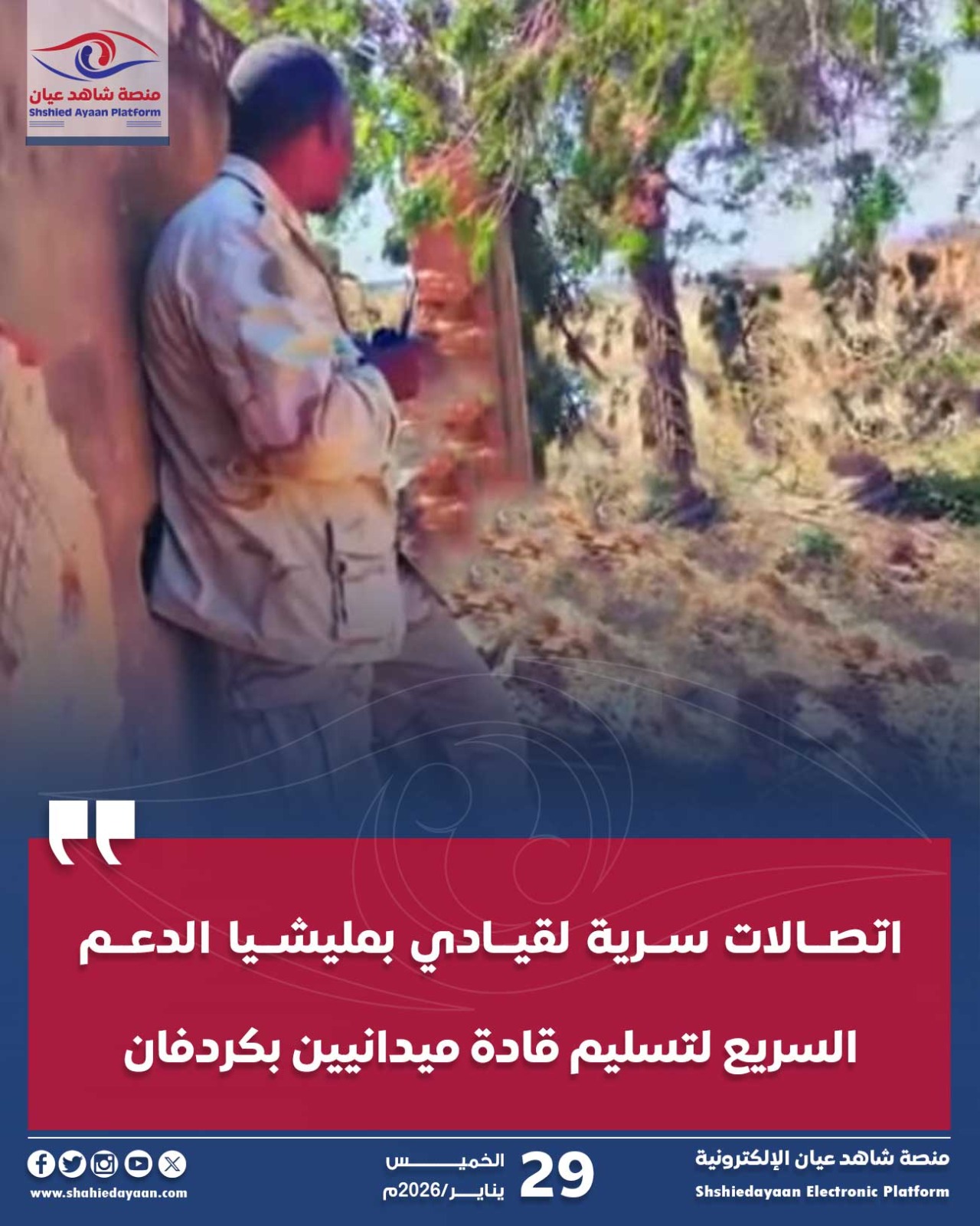 مصادر شاهد عيان : اتصالات سرية لقيادي بالدعم السريع لتسليم قادة ميدانيين بكردفان كشفت مصادر موثوقة أن قيادياً بارزاً في…