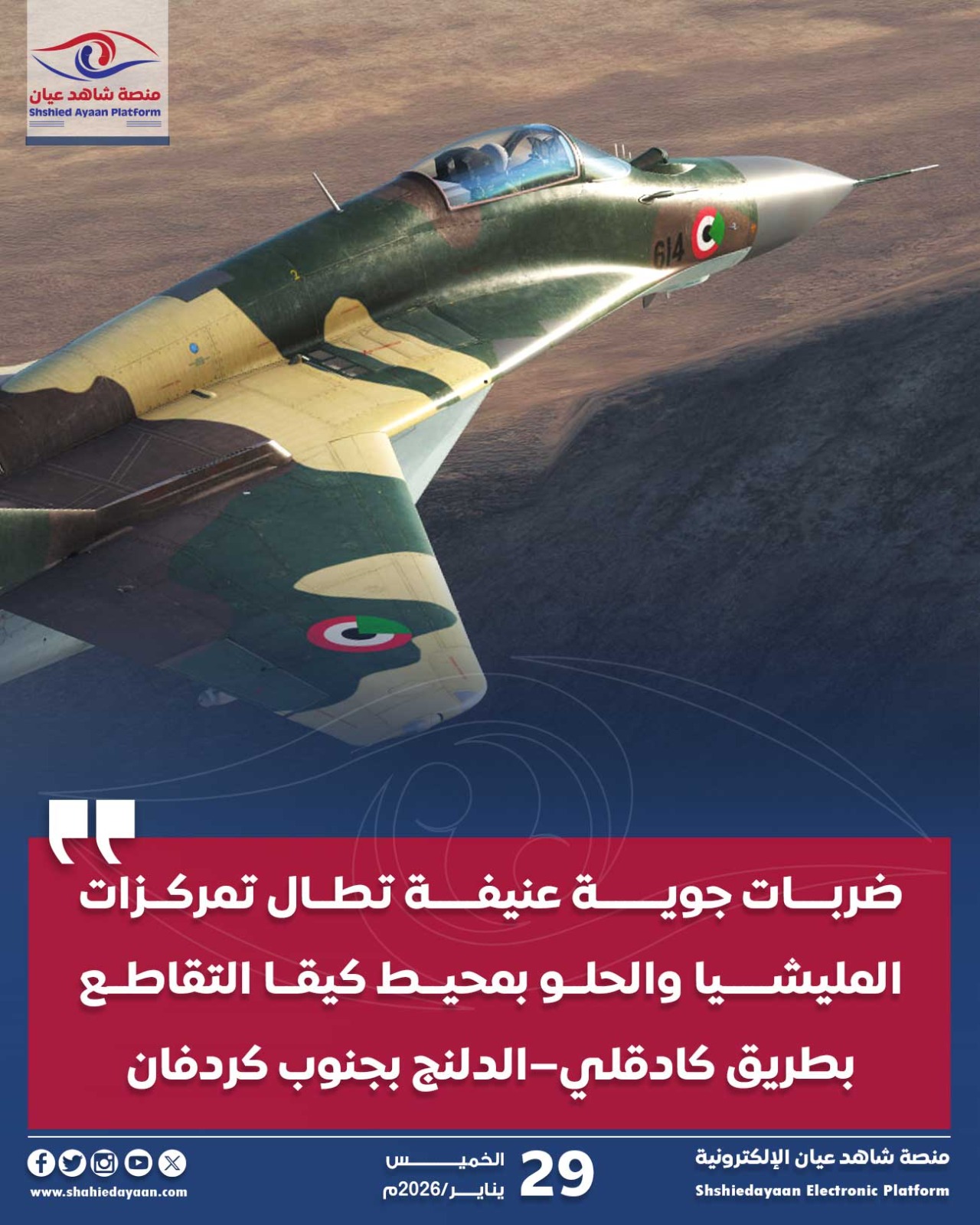 ضربات جوية عنيفة تطال تمركزات المليشيا والحلو بمحيط كيقا التقاطع بطريق كادقلي–الدلنج بجنوب كردفان نفّذت القوات المسلحة ضربات جوية عنيفة…