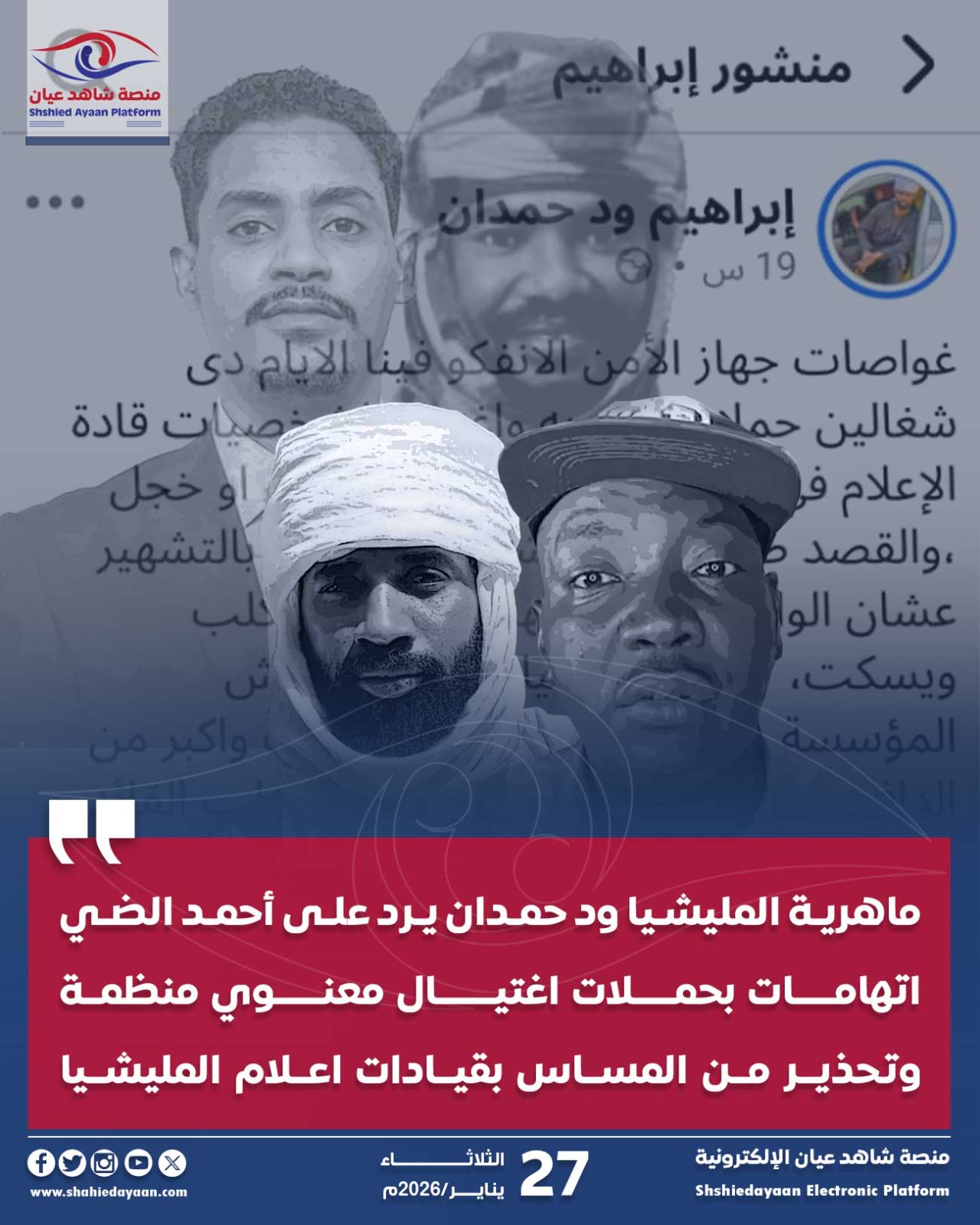 ماهرية المليشيا ود حمدان يرد على أحمد الضي اتهامات بحملات اغتيال معنوي منظمة وتحذير من المساس بقيادات اعلام المليشيا رصد…